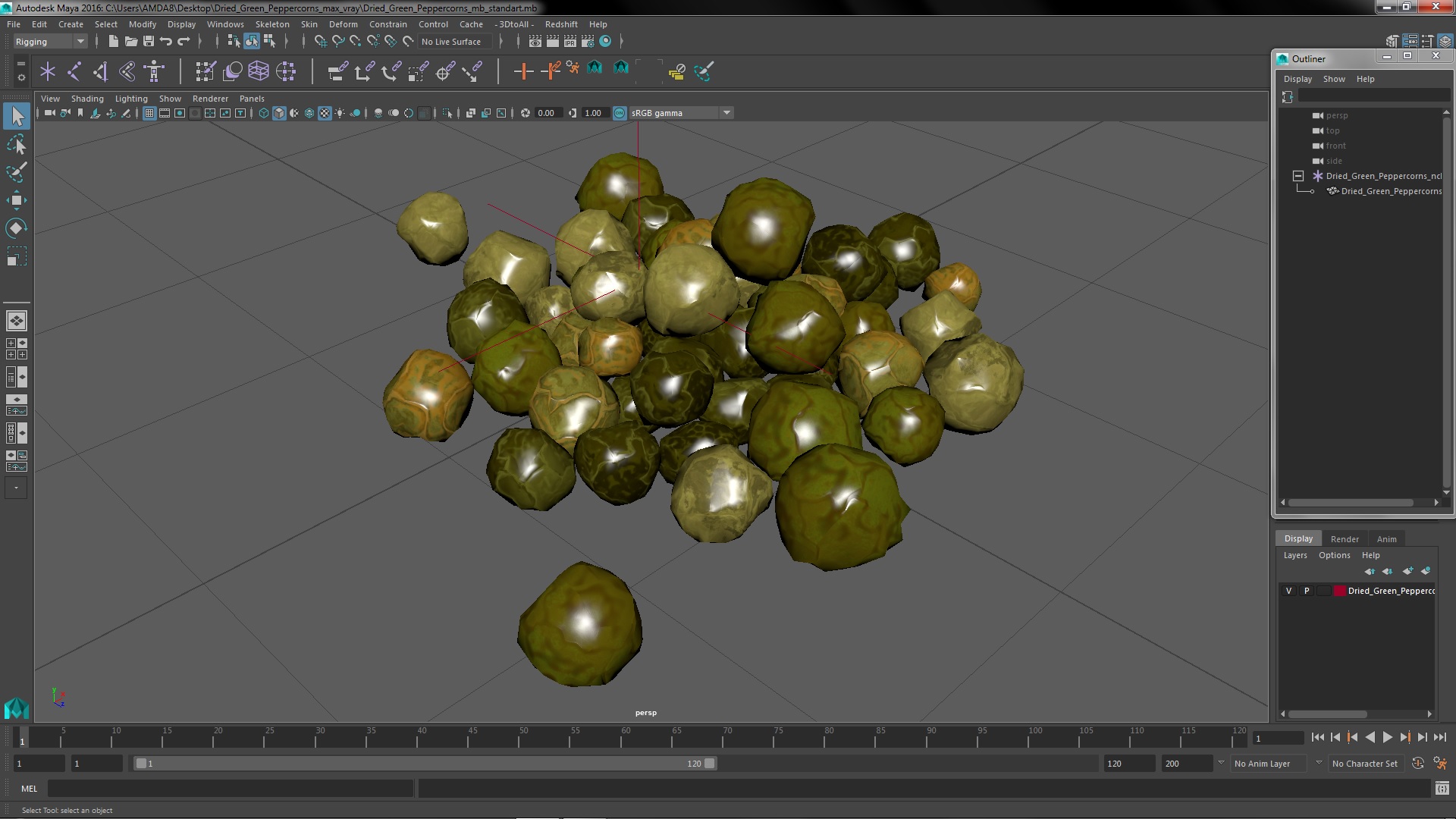 Dried Green Peppercorns is a 3D model of pile of dried green pepper fruits, which are made from still unripe pepper plant seeds.