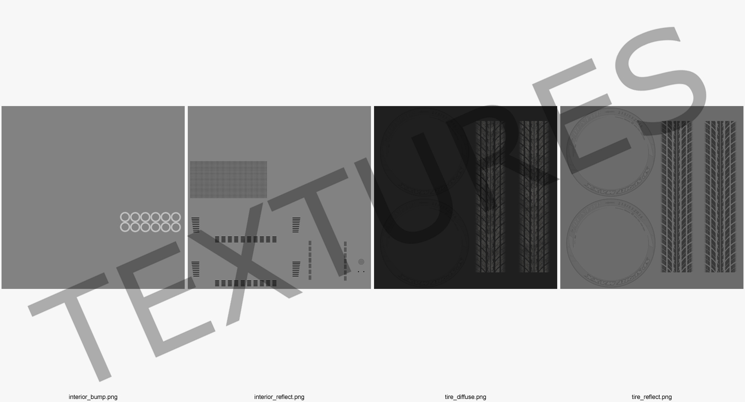 All textures and materials are included and mapped. (All colors can be easily modified.)
