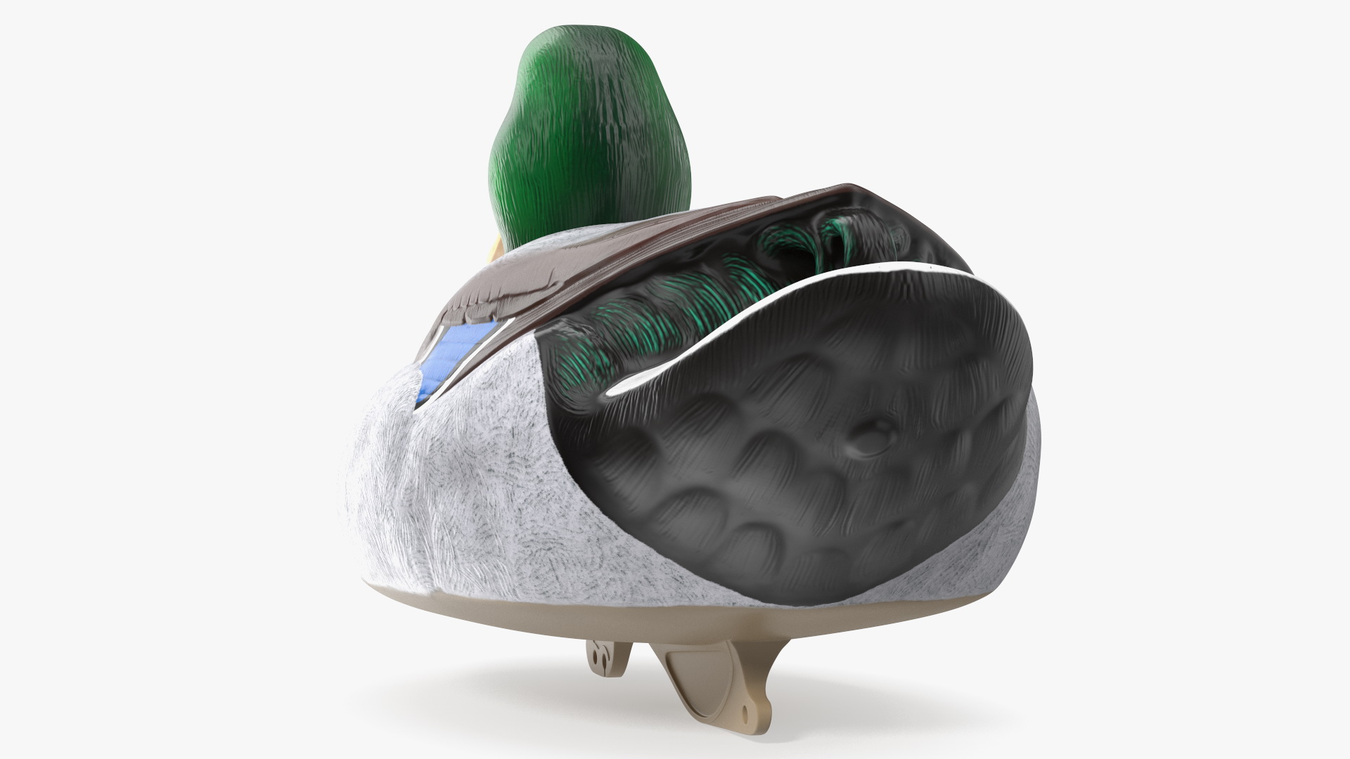Duck Decoy Drake is a three-dimensional model of an artificial, man-made duck-like object, by which a hunter person lures wild duck birds for duck hunting.