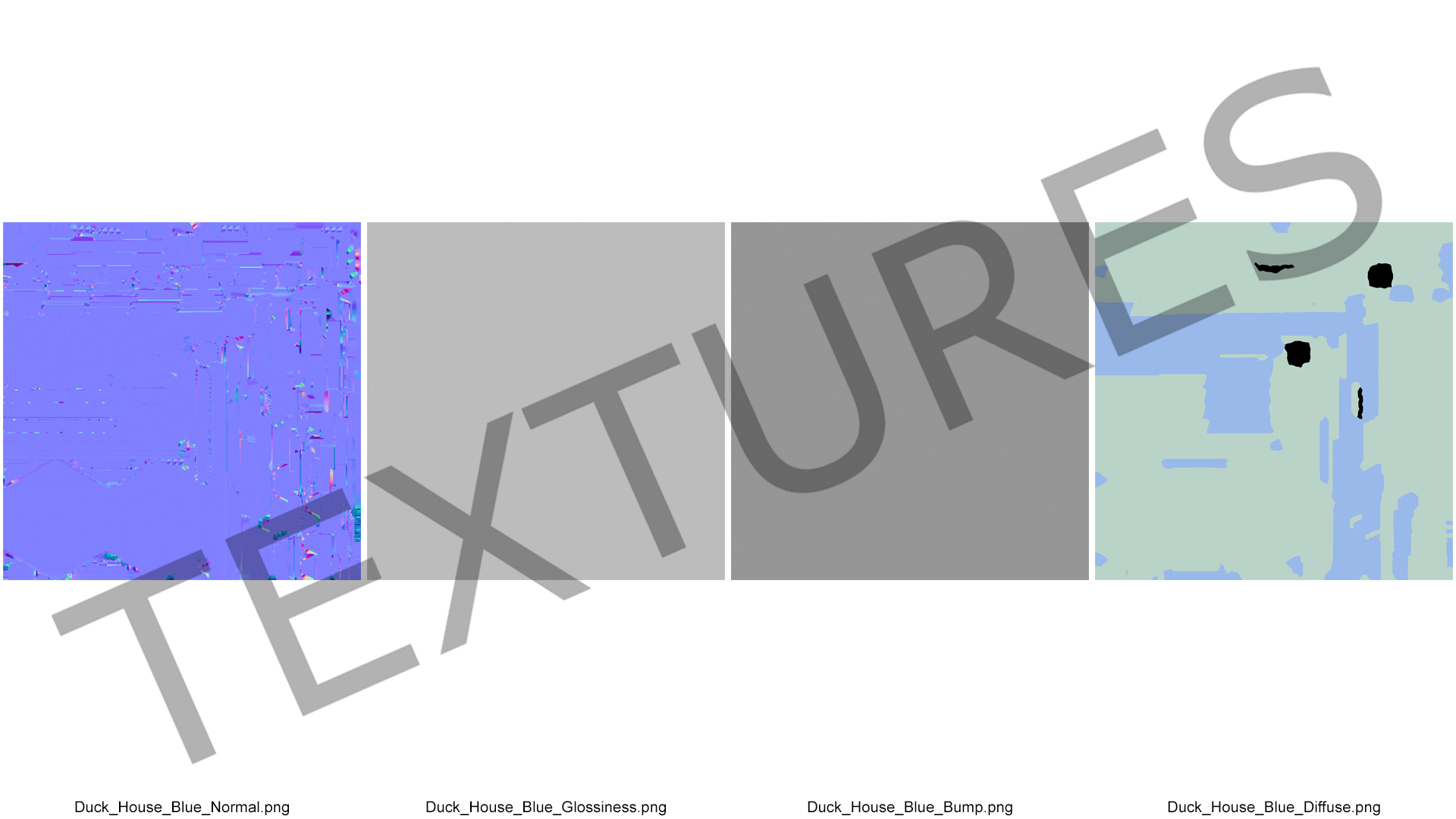 All textures and materials are included and mapped. (All colors can be easily modified.)