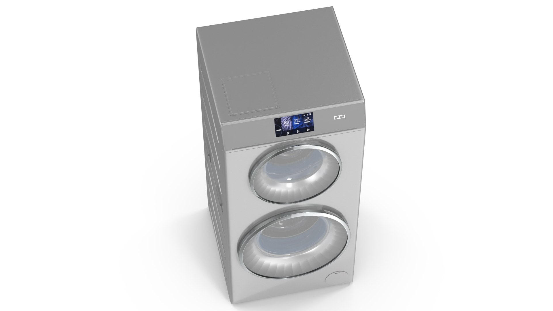 Duo Washer Dryer Machine is a 3D model of specifically designed freestanding washing machine with a smaller upper drum and larger lower drum so user can wash two loads of laundry at the same time.