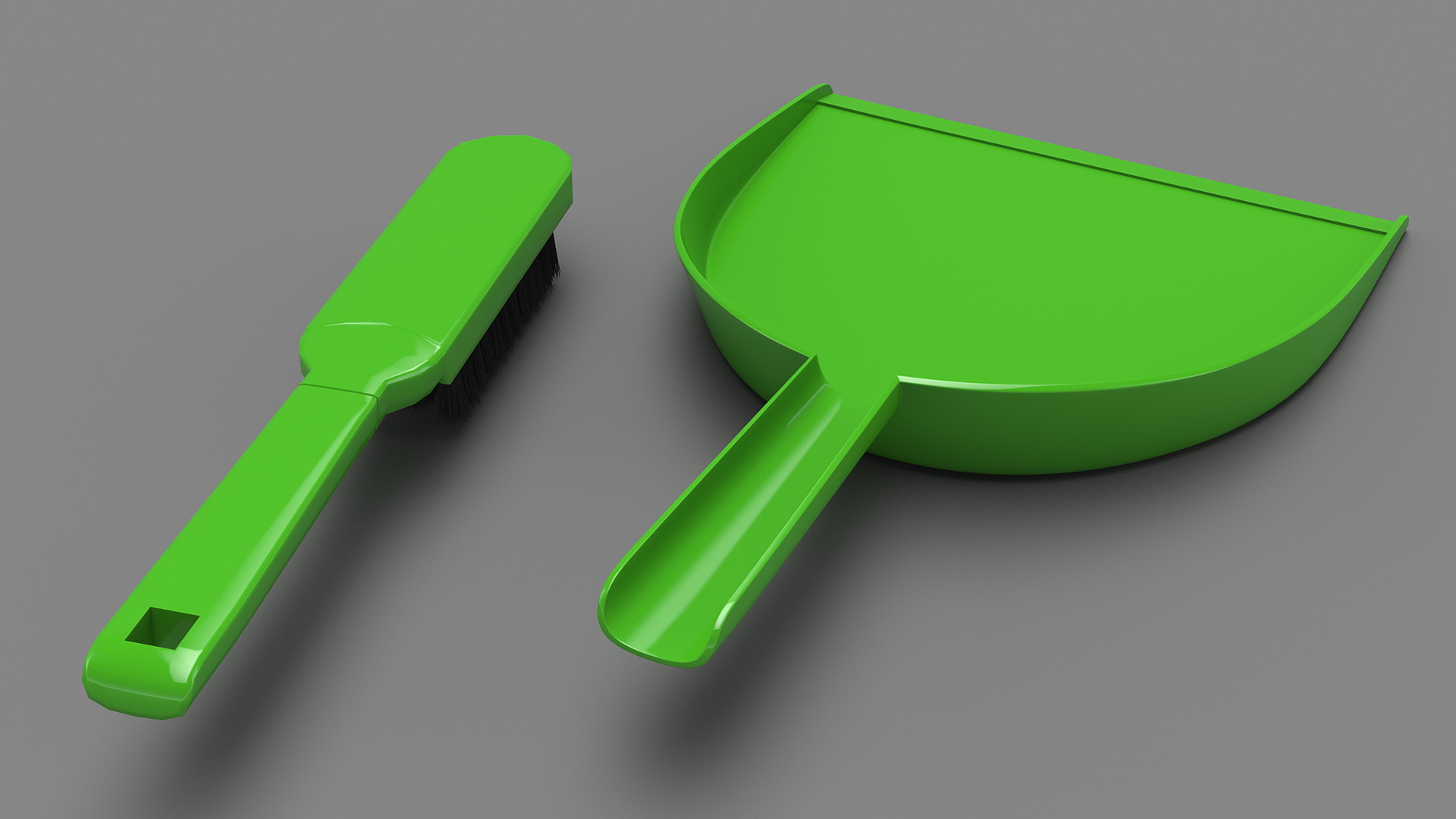 Dustpan and Brush Set Fur is a three-dimensional model of plastic dustpan and plastic brush which is a popular household cleaning tool which designed for manual sweeping and debris collection.