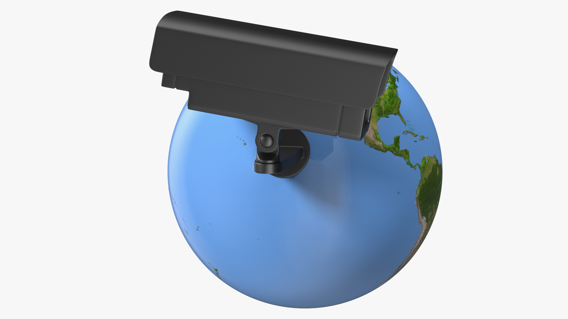 For personal information protection, Security Cameras, Internet network surveillance, earth globe symbols, and Internet network safety promotional, advertising, documentary, educational, or marketing projects.