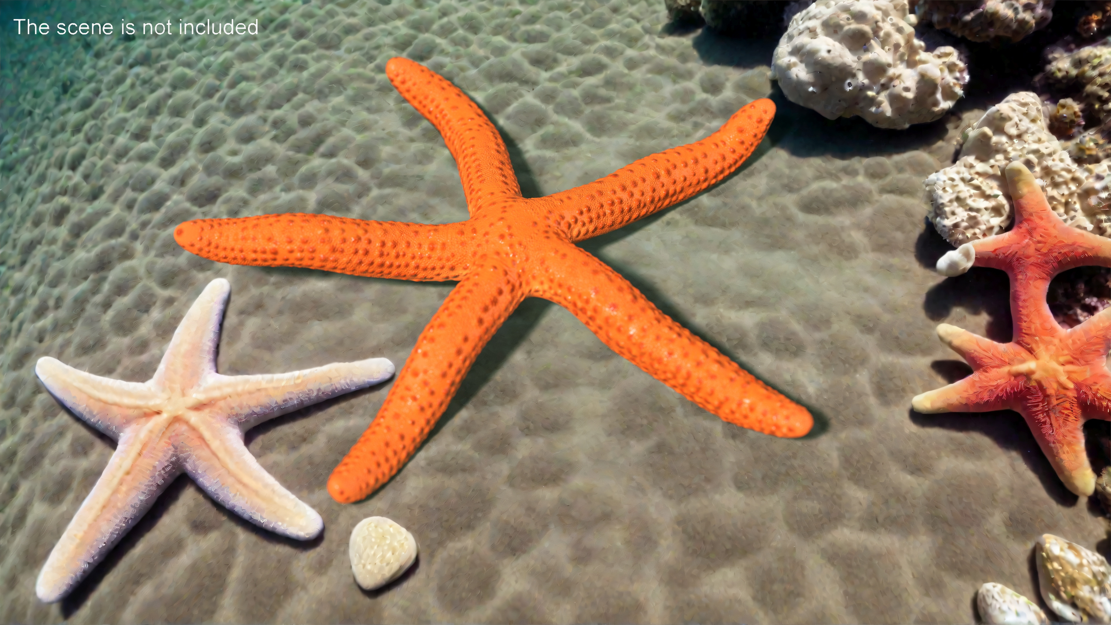 Echinaster Sepositus Crawling Pose is a three-dimensional model of sea star marine invertebrate animal which is a star-shaped water creature (starfish or sea star), which is a sea invertebrate animal from the class Asteroidea which occur on the ocean seabed.