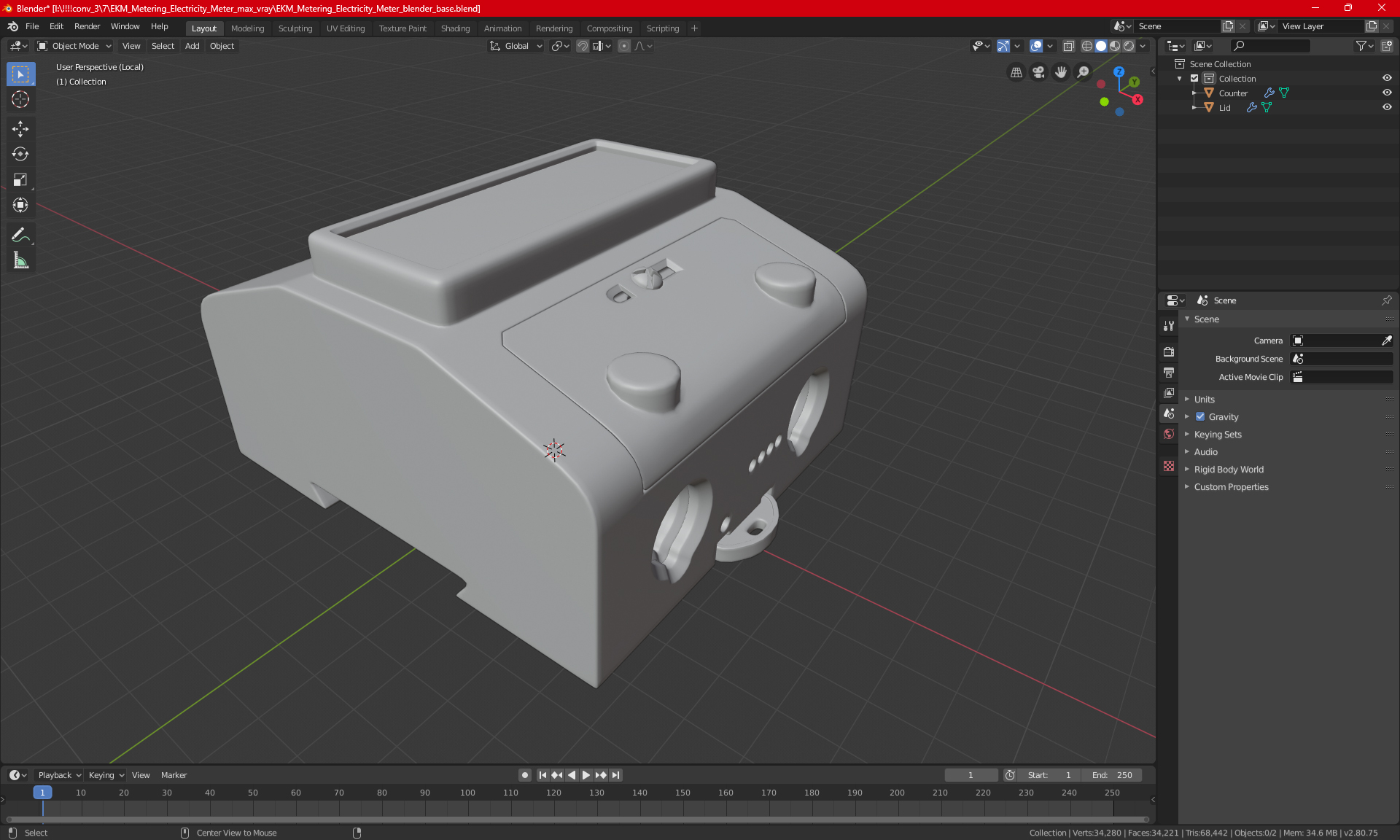 EKM Metering Electricity Meter is a high quality, photo real 3d model that will enhance detail and realism to any of your rendering projects. The model has a fully textured, detailed design that allows for close-up renders, and was originally modeled in 3ds Max 2020 and rendered with V-Ray. Renders have no postprocessing!