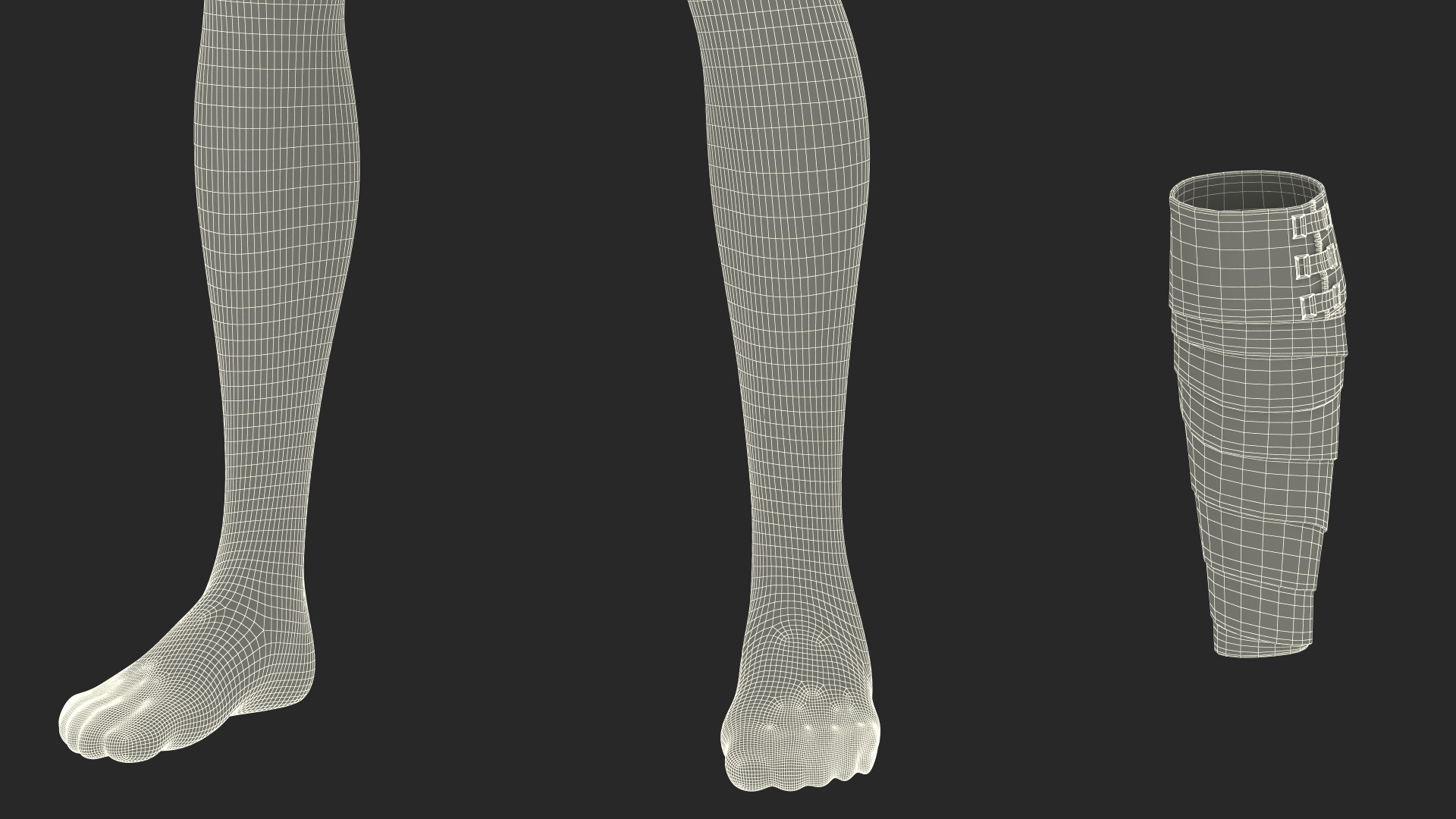 3D model Elastic Bandage Beige with Clamps Wrapped Around Leg on Mannequin