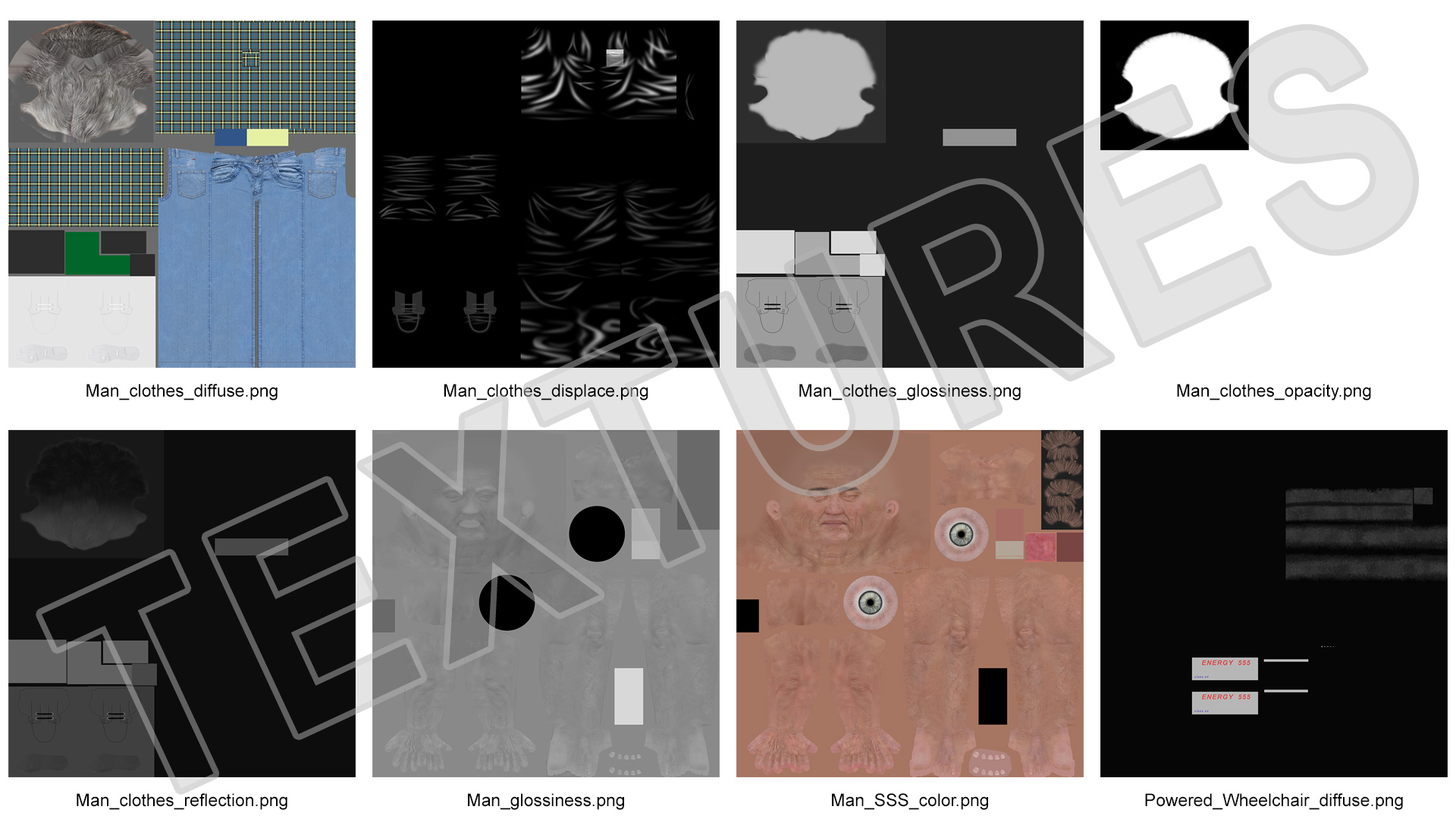 Elderly Man Sitting in the Powered Wheelchair is a high quality, photo real 3d model that will enhance detail and realism to any of your rendering projects. The model has a fully textured, detailed design that allows for close-up renders, and was originally modeled in 3ds Max 2020 and rendered with V-Ray. Renders have no postprocessing!