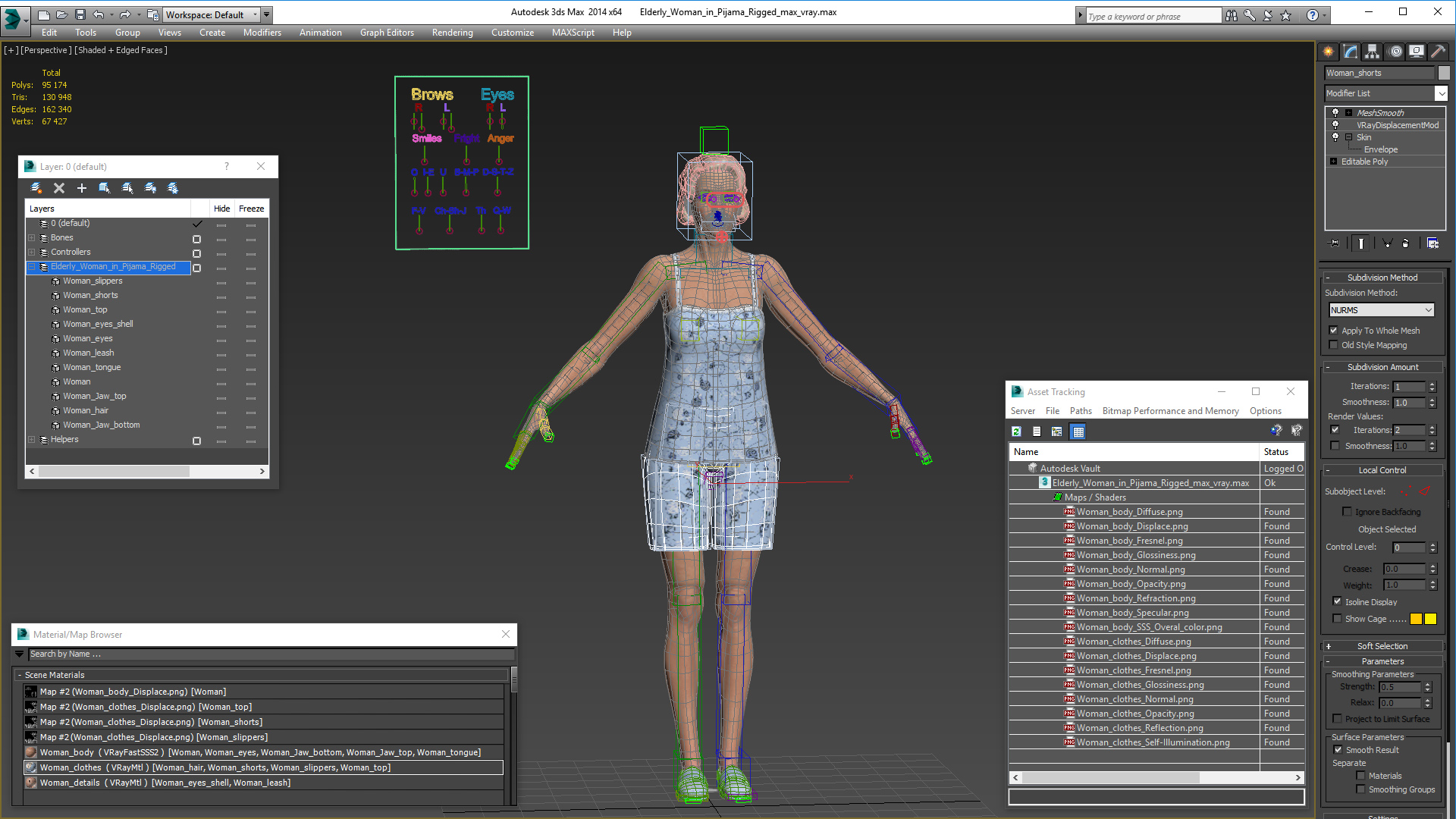 Elderly Woman in Pijama Rigged is fully rigged and is ready to be animated. You can easily position it the way you need or animate it the way your project requires using helpers in 3D Studio Max. See the turntable to get an idea of how rigging works.