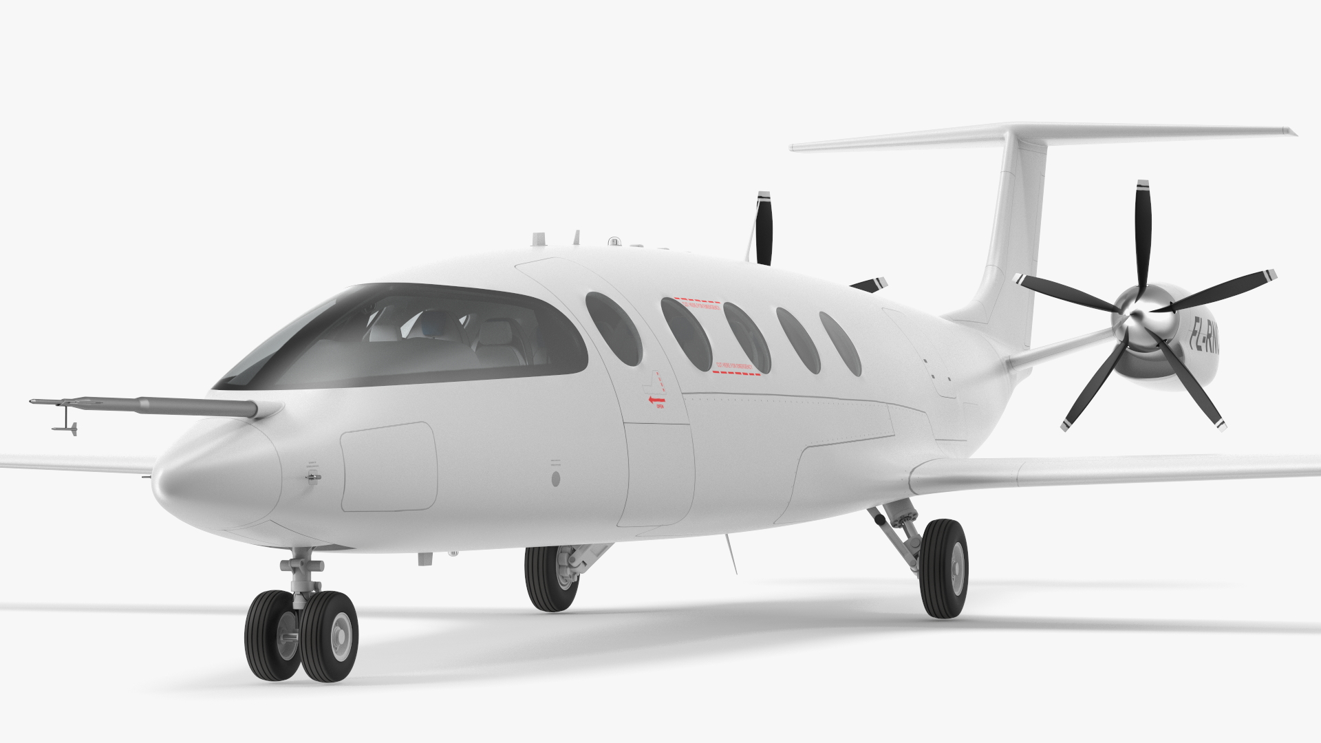 Innovative all-electric passenger aircraft which is powered by powerful electrical motors driving by two five-blade propellers.