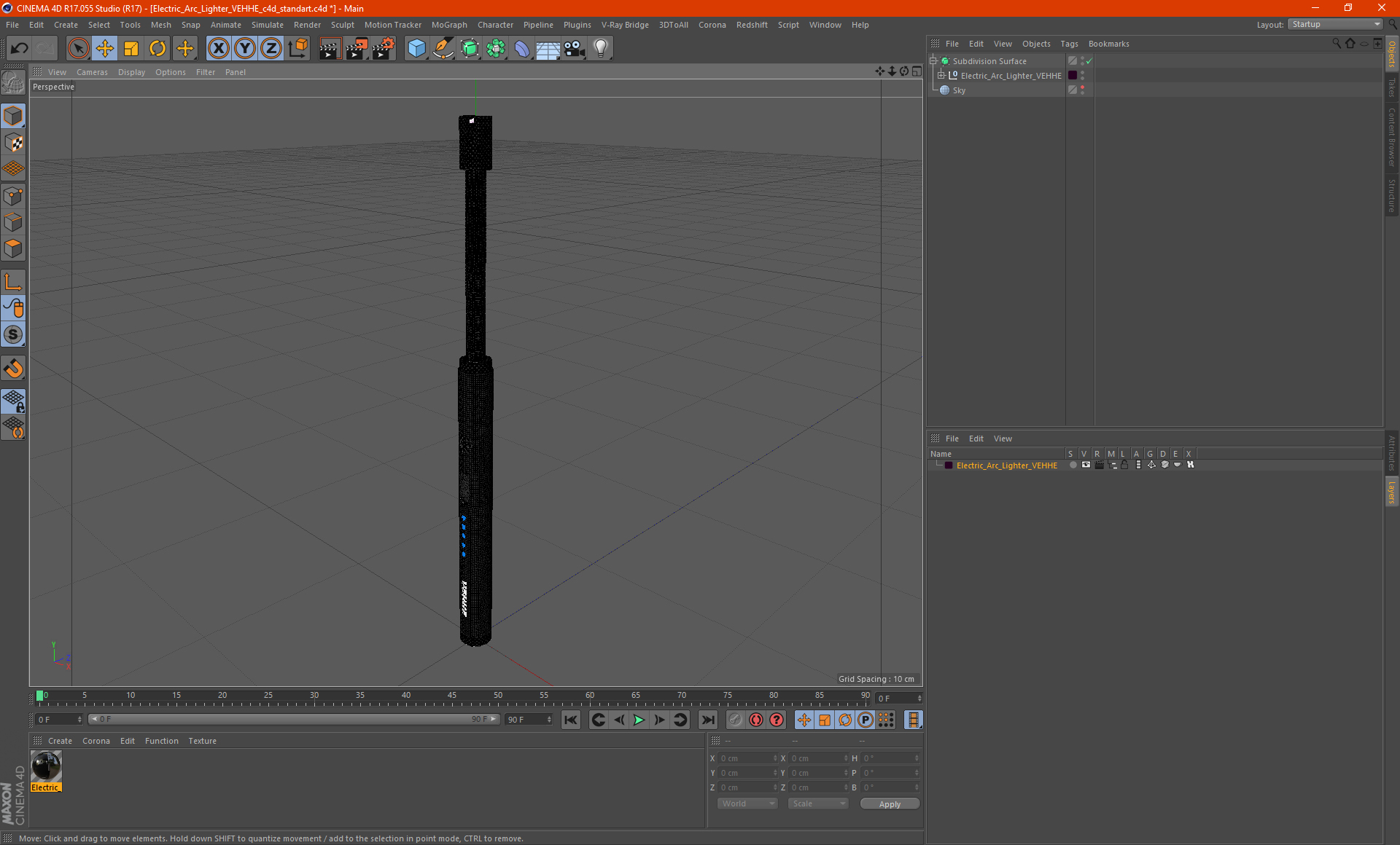 Electric Arc Lighter VEHHE is a high quality, photo real 3d model that will enhance detail and realism to any of your rendering projects. The model has a fully textured, detailed design that allows for close-up renders, and was originally modeled in 3ds Max 2020 and rendered with V-Ray. Renders have no postprocessing!