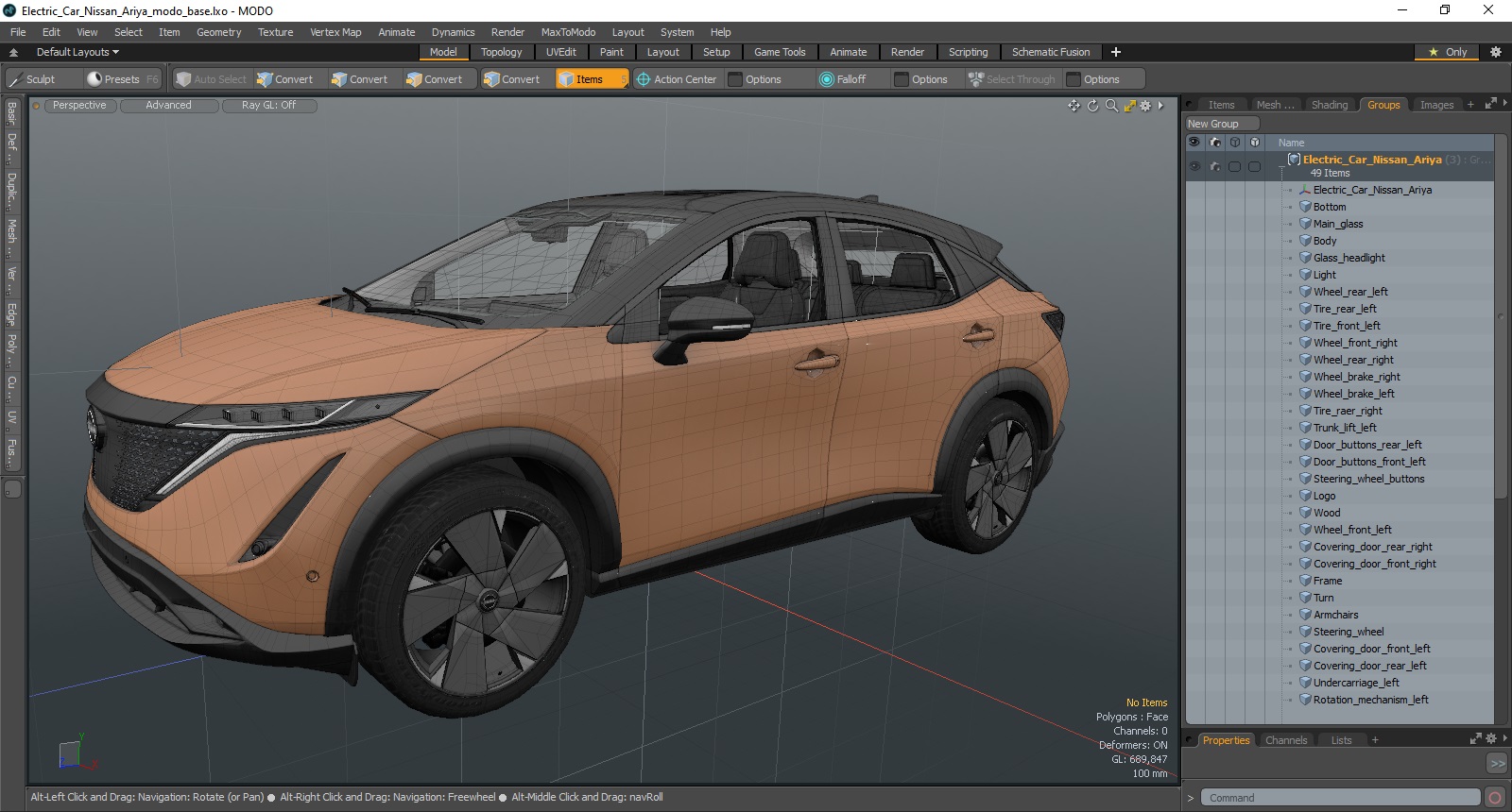 Electric Car Nissan Ariya is a high quality, photo real 3d model that will enhance detail and realism to any of your rendering projects. The model has a fully textured, detailed design that allows for close-up renders, and was originally modeled in 3ds Max 2020 and rendered with V-Ray. Renders have no postprocessing!