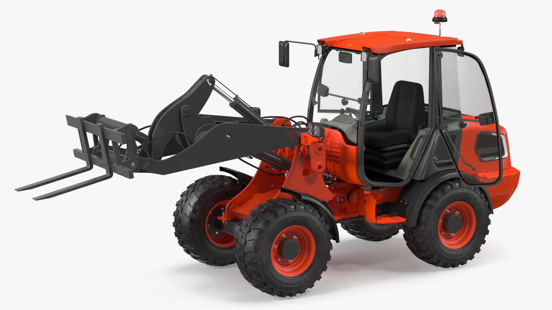 Electric Loader with Pallet Fork Rigged is a 3d model of electric compact wheel loader platform that can lift almost anything such as debris, gravel, soil, dirt, pallets, etc.