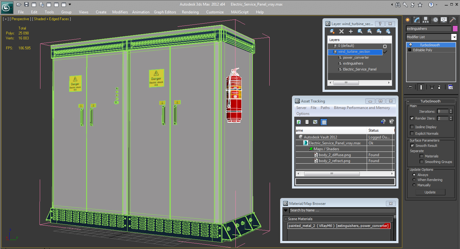 Electric Service Panel is a high quality, photo real 3d model that will enhance detail and realism to any of your rendering projects. The model has a fully textured, detailed design that allows for close-up renders, and was originally modeled in 3ds Max 2020 and rendered with V-Ray. Renders have no postprocessing!