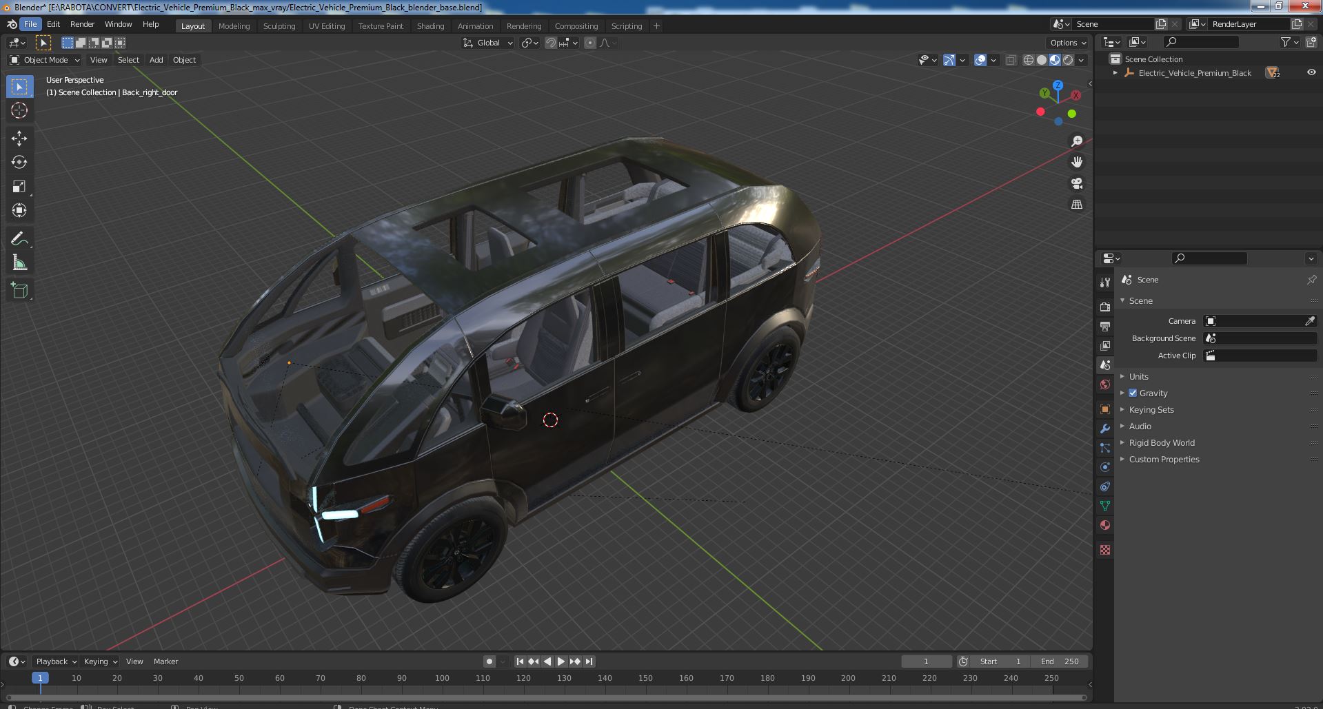Electric Vehicle Premium Black is a high quality, photo real 3d model that will enhance detail and realism to any of your rendering projects. The model has a fully textured, detailed design that allows for close-up renders, and was originally modeled in 3ds Max 2020 and rendered with V-Ray. Renders have no postprocessing!