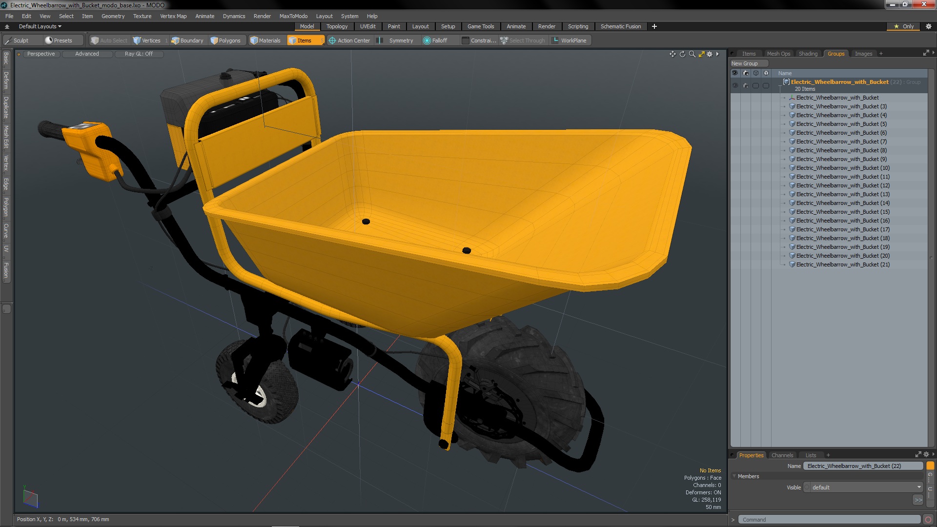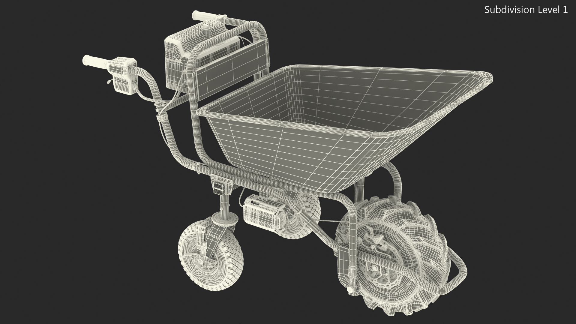 Electric Wheelbarrow with Bucket is a three-dimensional model of a specialized wheelbarrow electric powered utility cart.