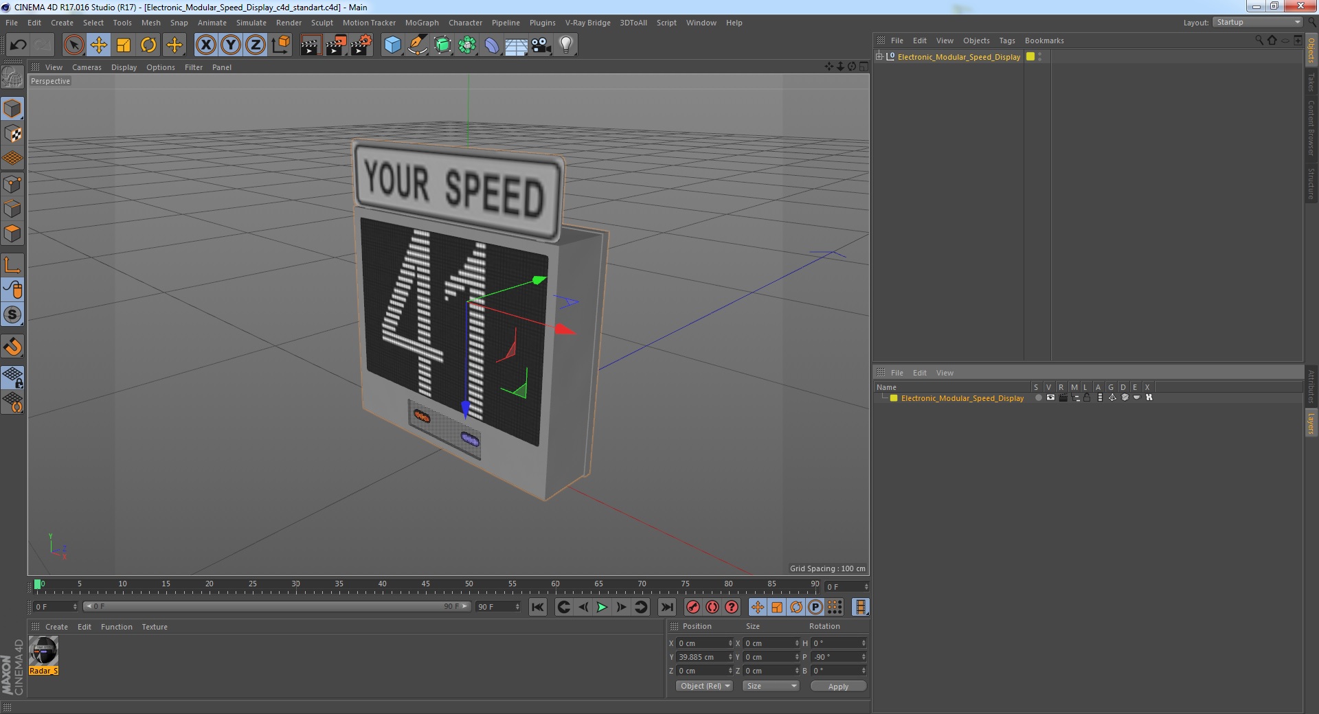 Electronic Modular Speed Display is a high quality, photo real 3d model that will enhance detail and realism to any of your rendering projects. The model has a fully textured, detailed design that allows for close-up renders, and was originally modeled in 3ds Max 2020 and rendered with V-Ray. Renders have no postprocessing!