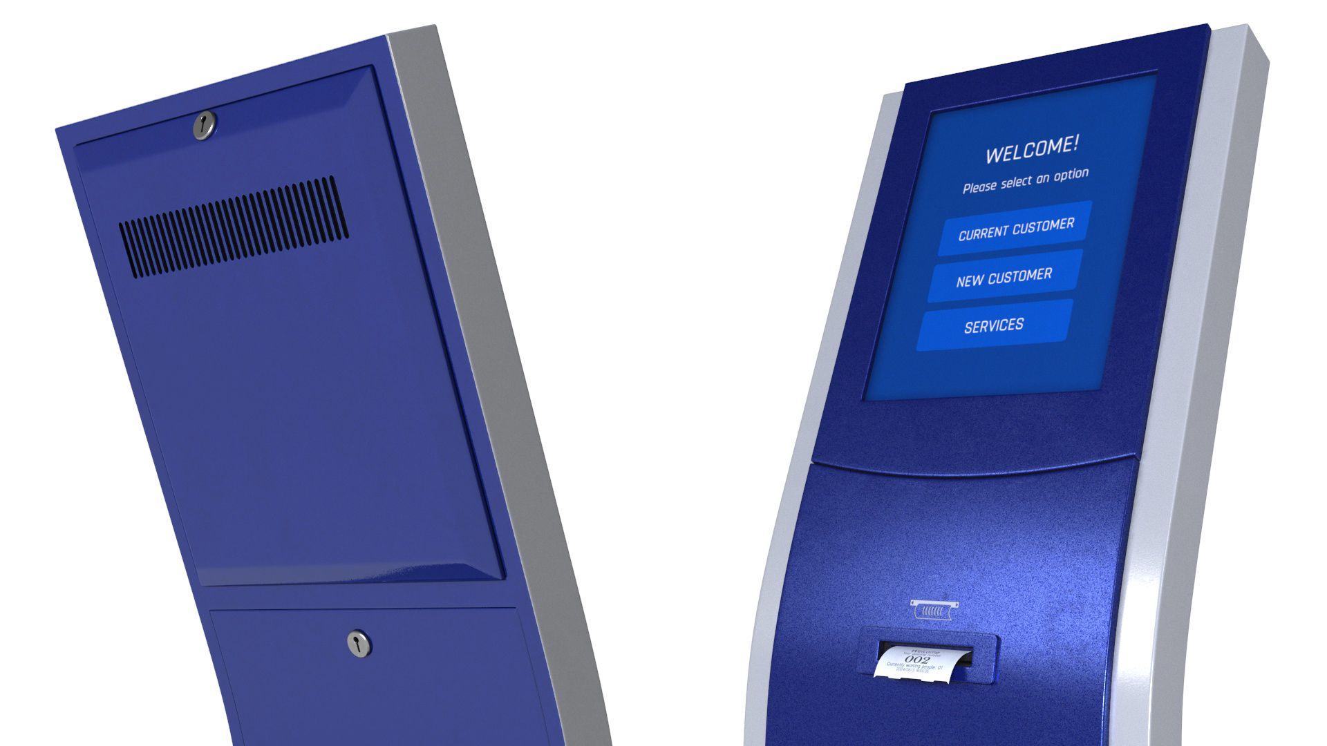 Electronic Queue Device Blue is a 3d model of an advanced electronic queue management system, designed to streamline customer flow and enhance service efficiency in various professional settings.