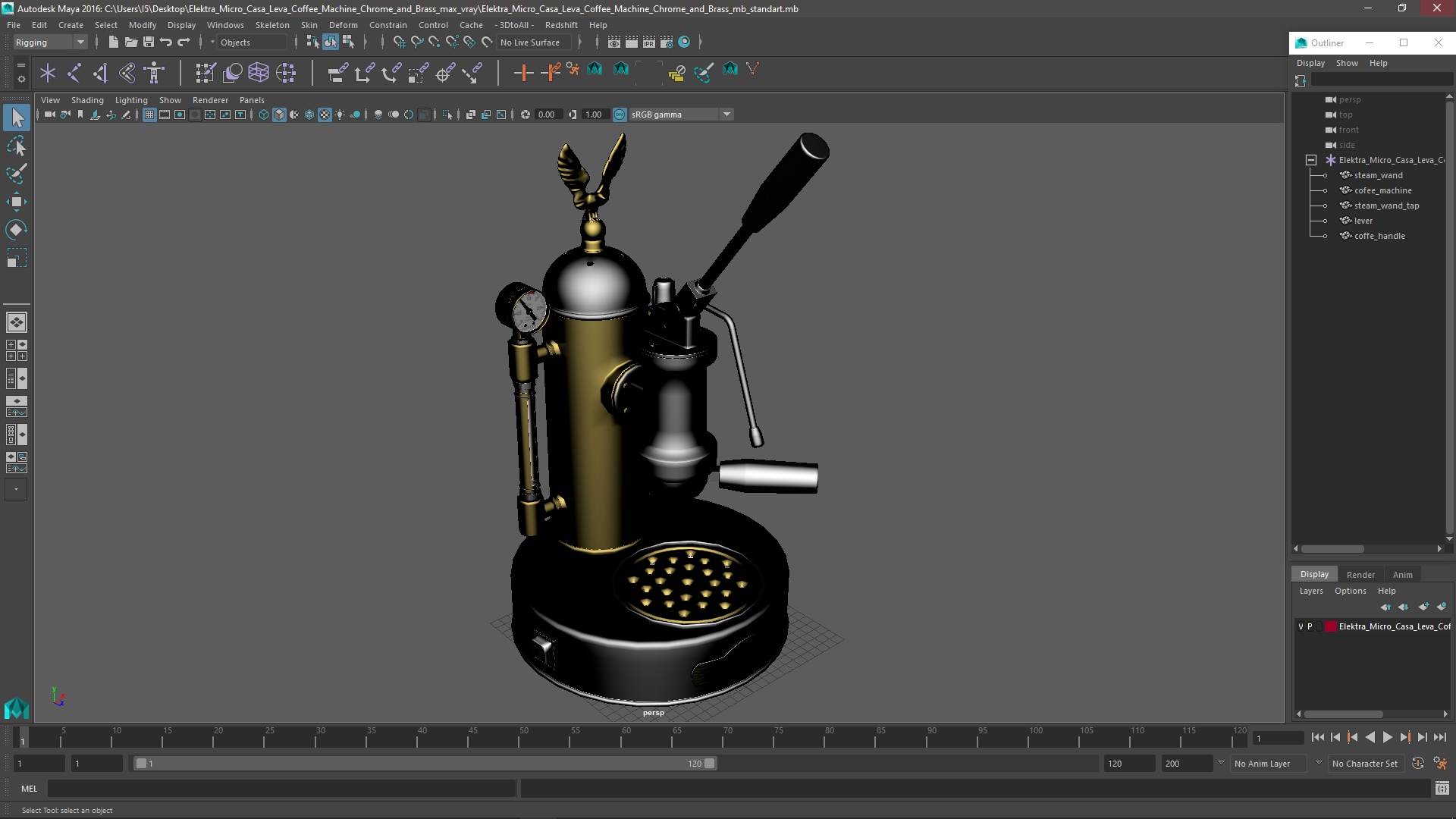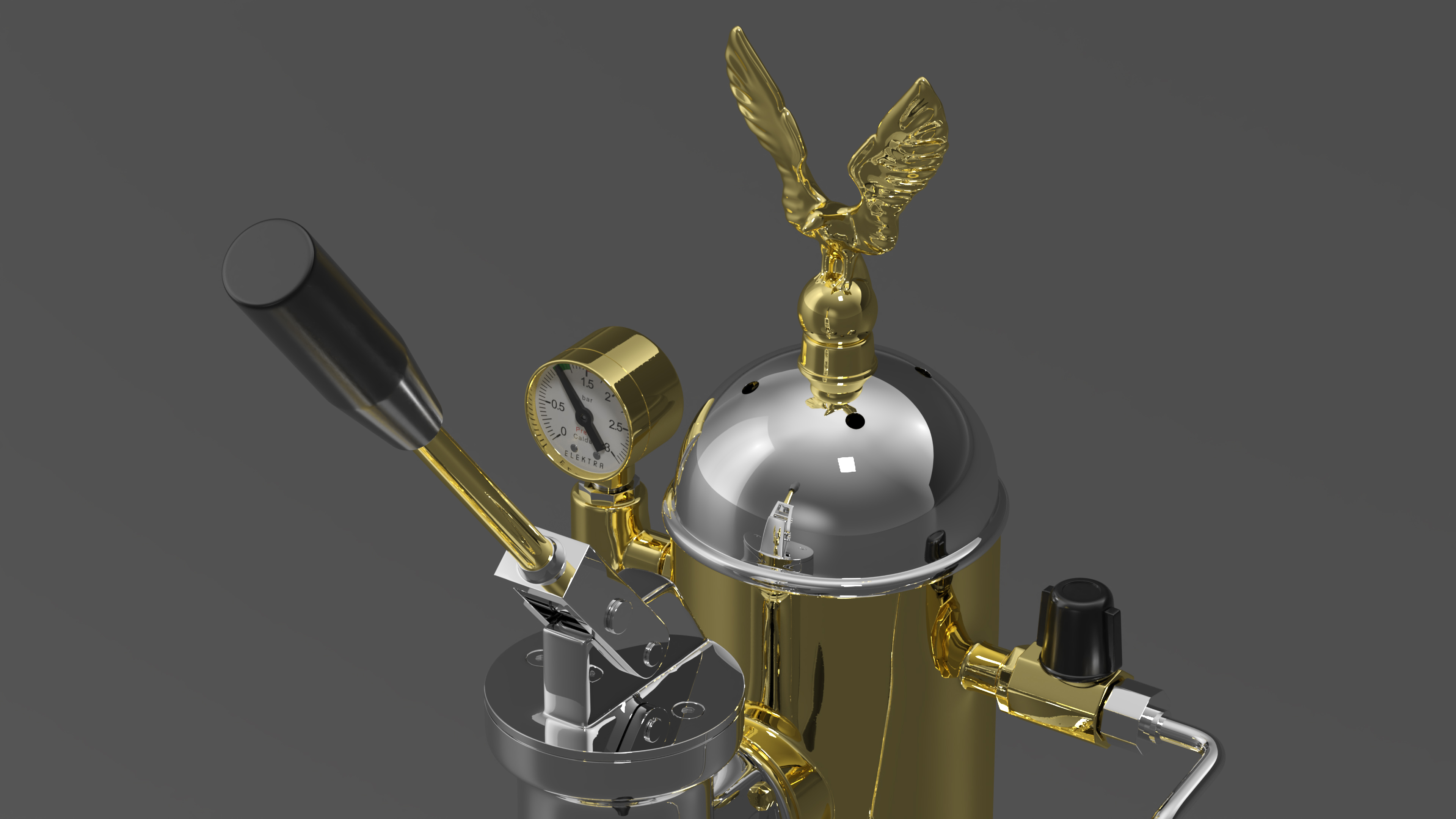 Elektra Micro Casa Leva Coffee Machine Chrome and Brass is a 3d model of high-end espresso machine known for its elegant design and exceptional performance.