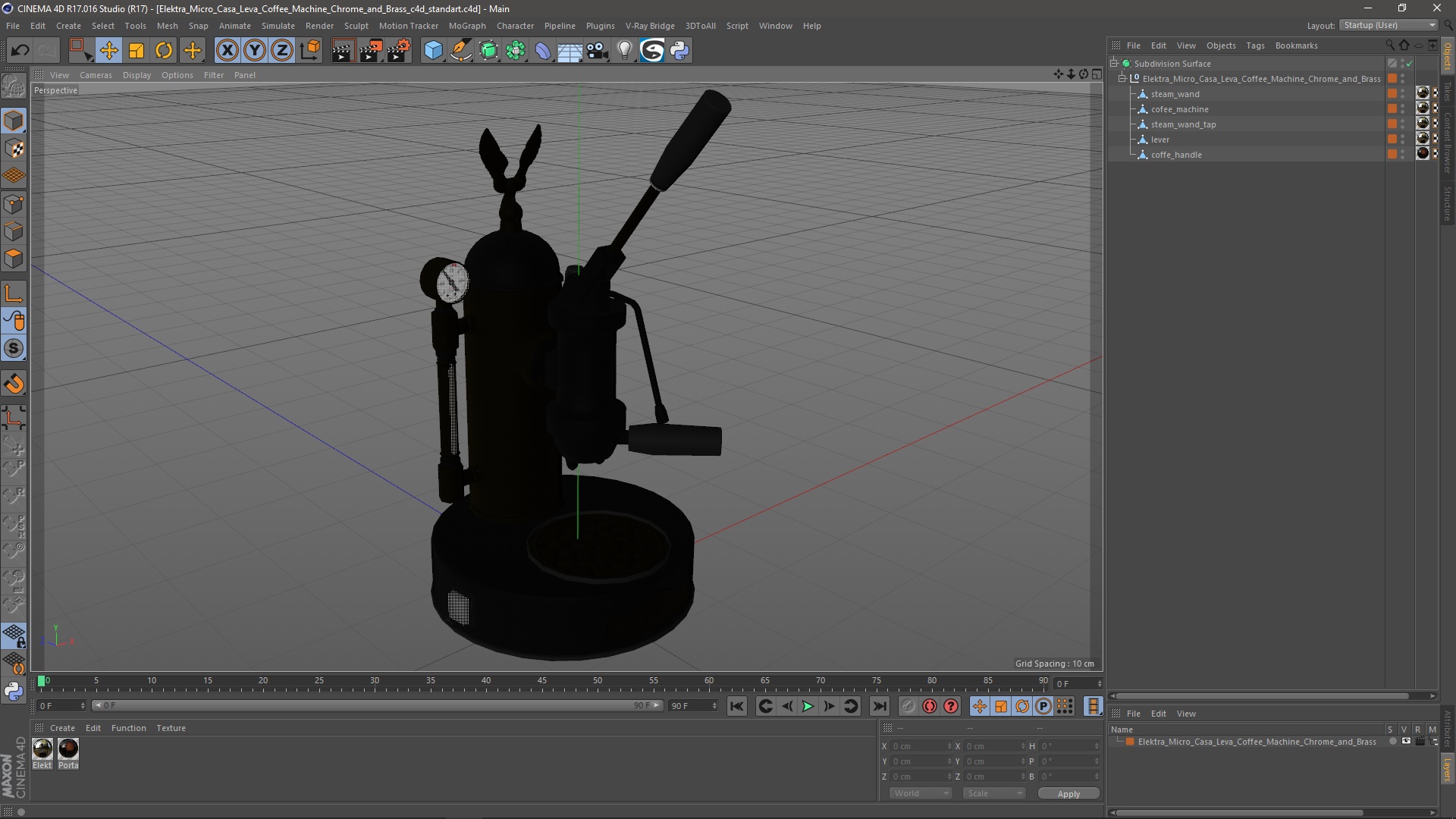Elektra Micro Casa Leva Coffee Machine Chrome and Brass is a high quality, photo real 3d model that will enhance detail and realism to any of your rendering projects. The model has a fully textured, detailed design that allows for close-up renders, and was originally modeled in 3ds Max 2020 and rendered with V-Ray. Renders have no postprocessing!