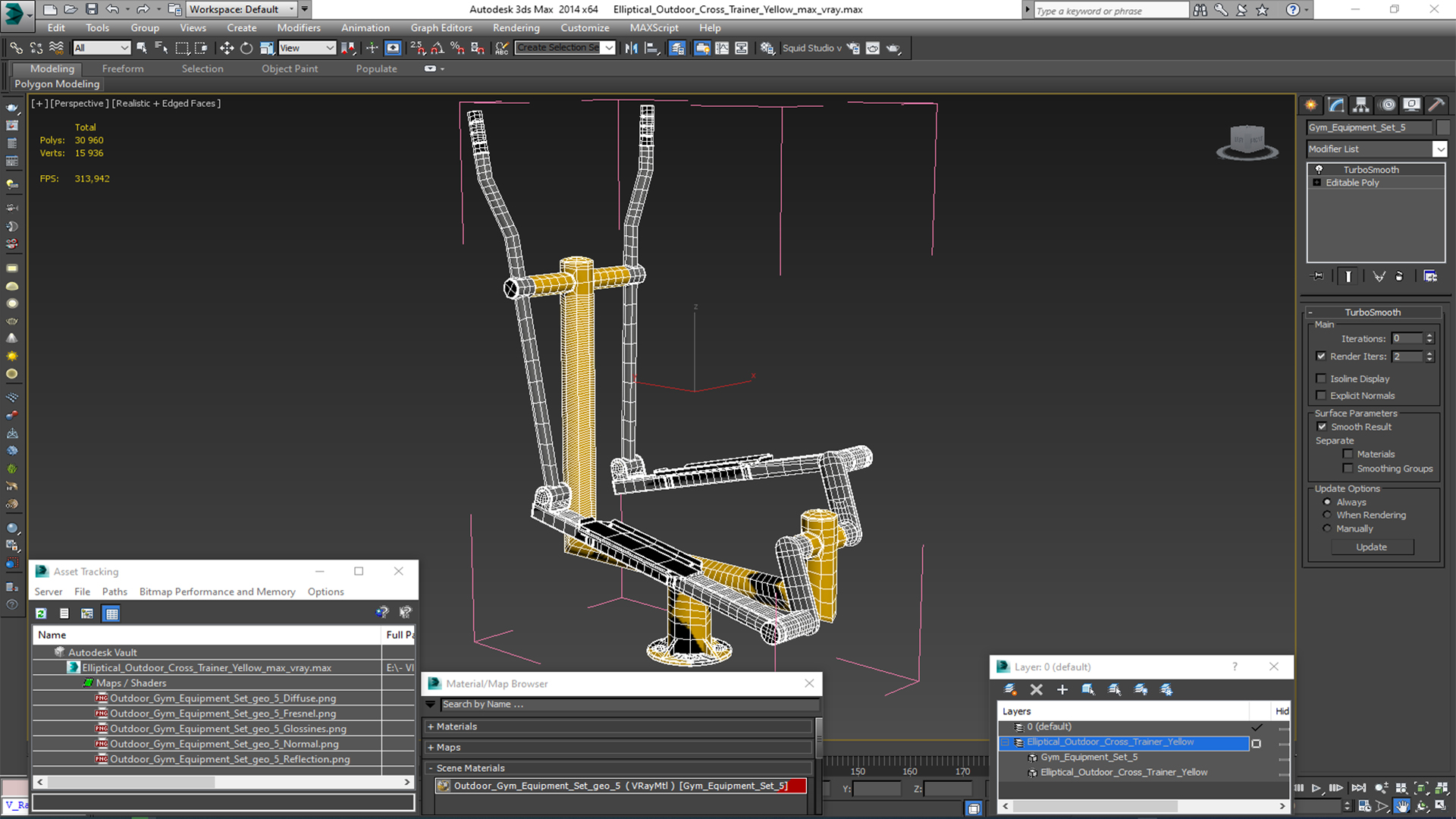 Elliptical Outdoor Cross Trainer Yellow is a high quality, photo real 3d model that will enhance detail and realism to any of your rendering projects. The model has a fully textured, detailed design that allows for close-up renders, and was originally modeled in 3ds Max 2020 and rendered with V-Ray. Renders have no postprocessing!