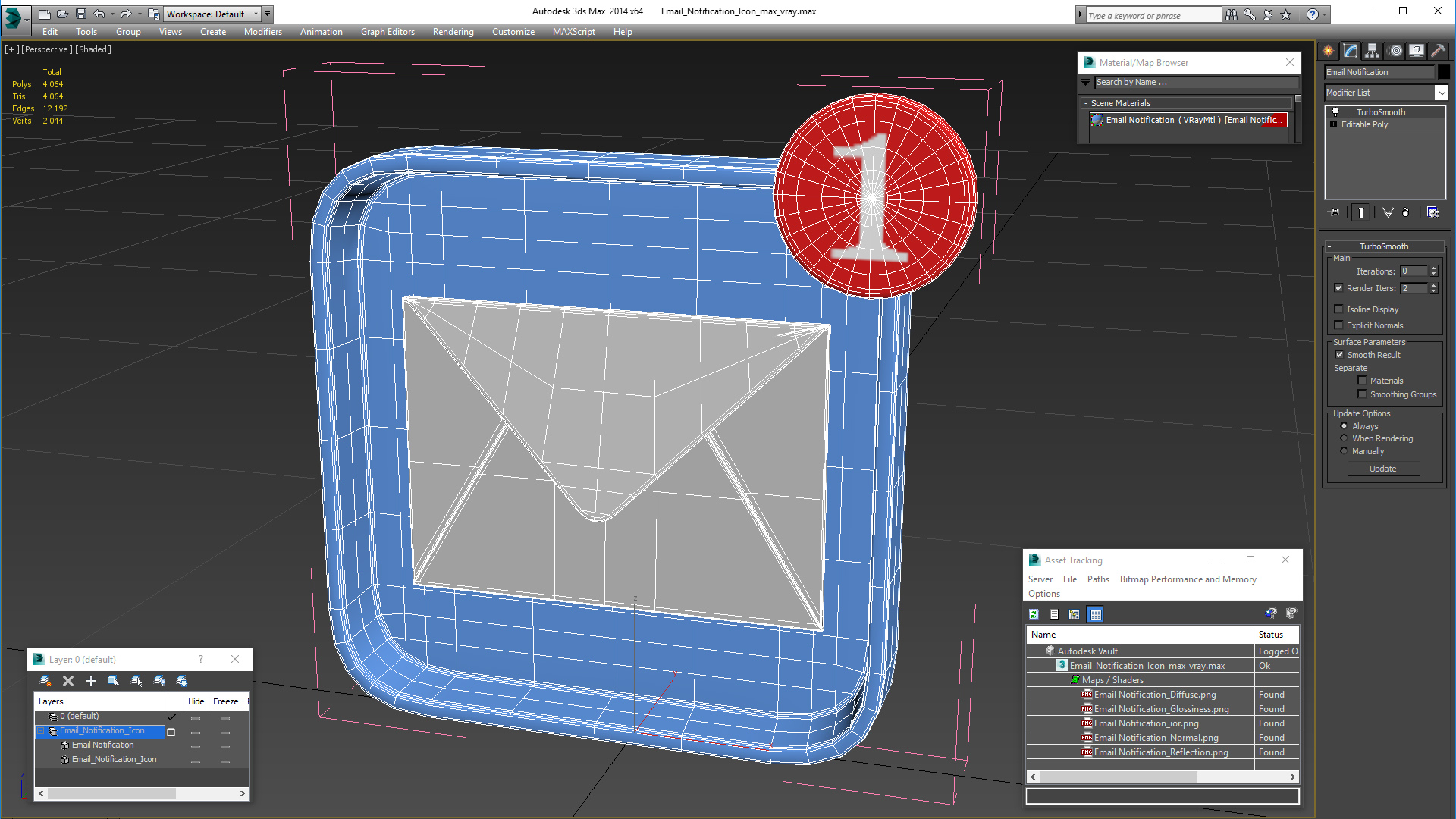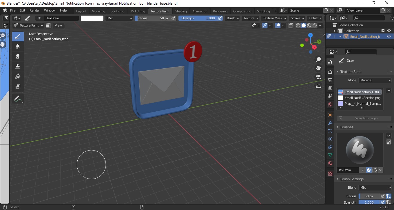 Email Notification Icon is a high quality, photo real 3d model that will enhance detail and realism to any of your rendering projects. The model has a fully textured, detailed design that allows for close-up renders, and was originally modeled in 3ds Max 2020 and rendered with V-Ray. Renders have no postprocessing!
