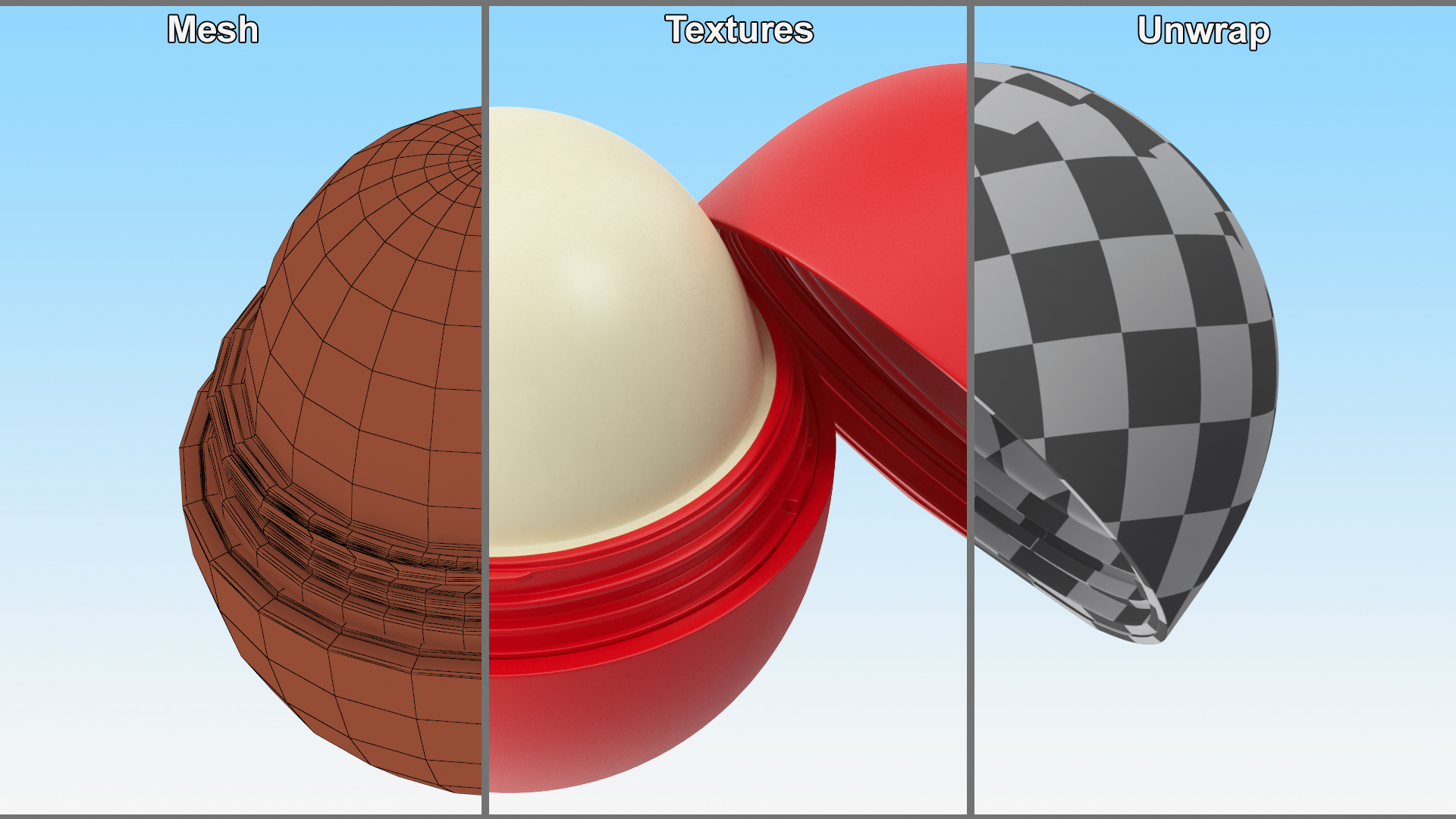 EOS Lip Moisturizer Red Open is a 3D model of popular wax-like product applied to the human lips to skin moisturize effect.