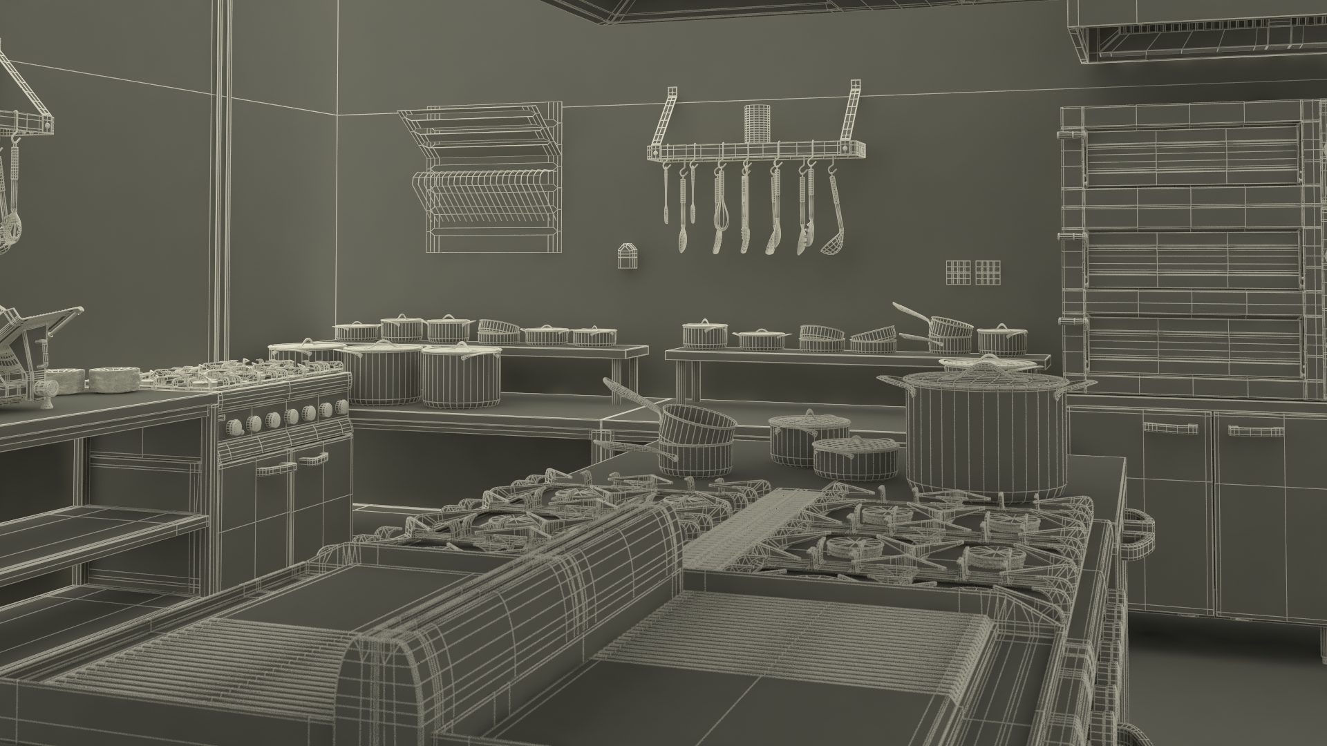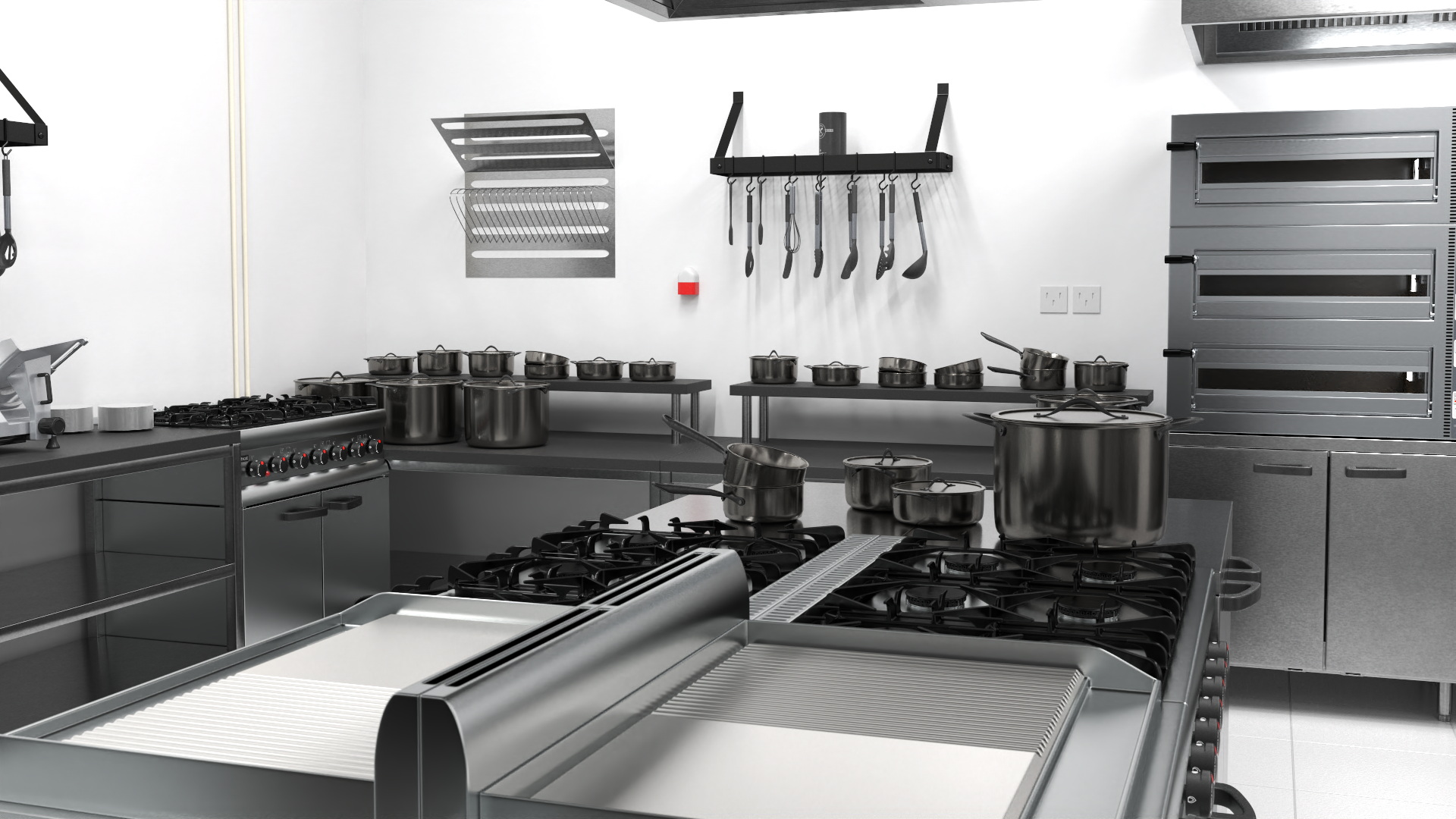 Equipped Commercial Kitchen No Lights is a high quality, photo real 3d model that will enhance detail and realism to any of your rendering projects. The model has a fully textured, detailed design that allows for close-up renders, and was originally modeled in 3ds Max 2020 and rendered with V-Ray. Renders have no postprocessing!