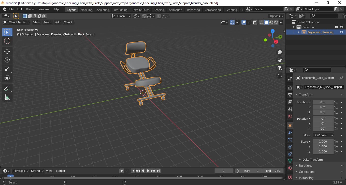 Ergonomic Kneeling Chair with Back Support is a high quality, photo real 3d model that will enhance detail and realism to any of your rendering projects. The model has a fully textured, detailed design that allows for close-up renders, and was originally modeled in 3ds Max 2020 and rendered with V-Ray. Renders have no postprocessing!