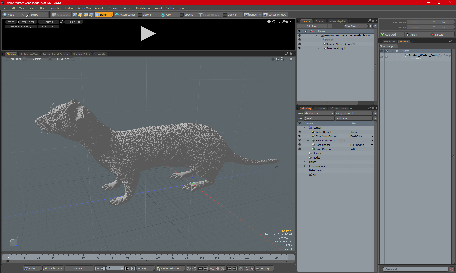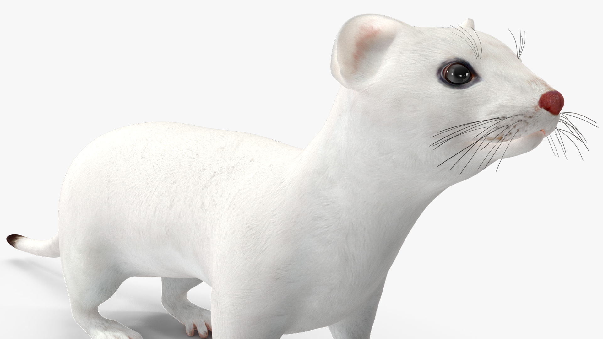 Ermine Winter Coat is a 3d model of small, white-bodied weasel with a black-tipped tail.