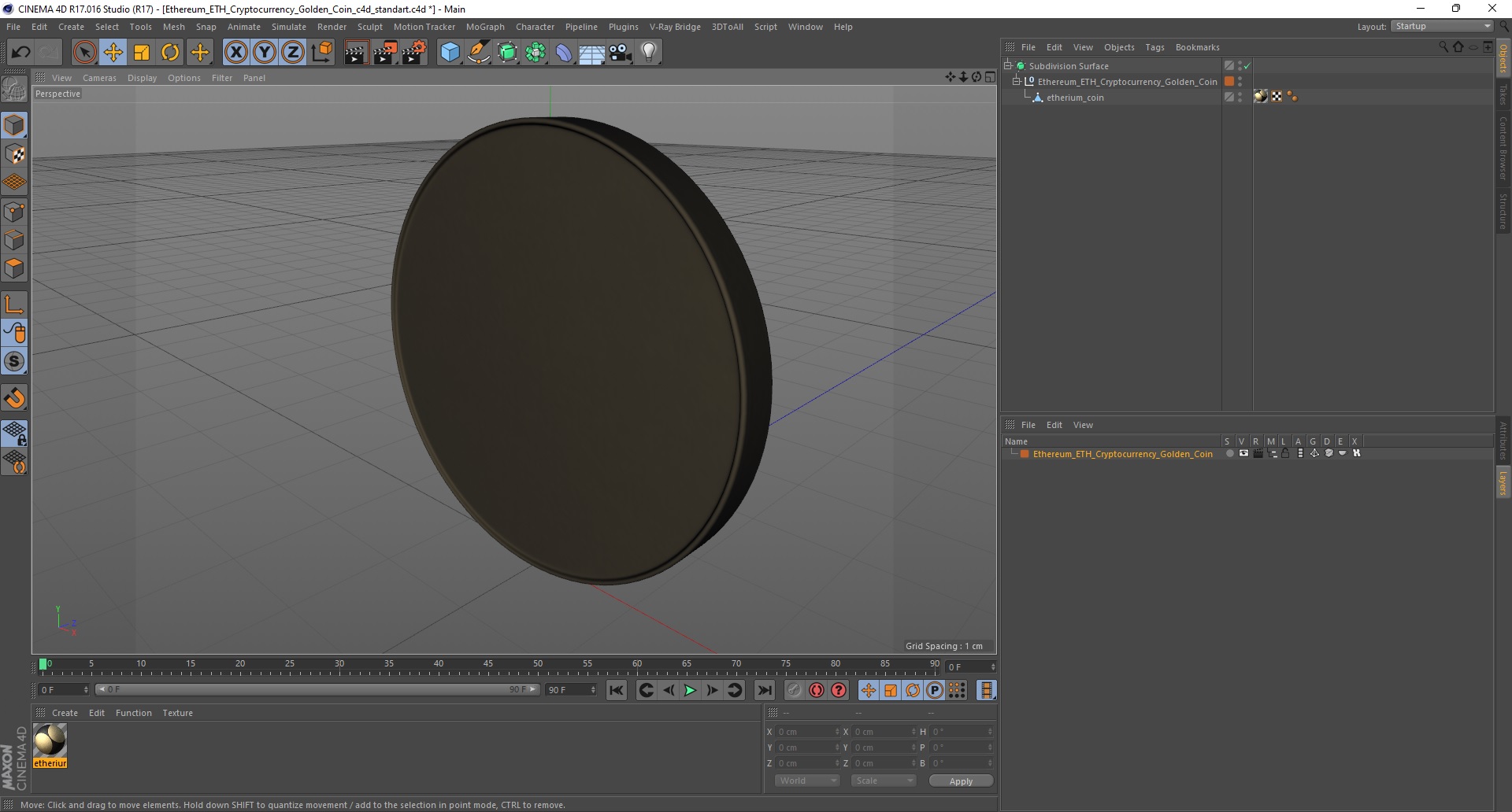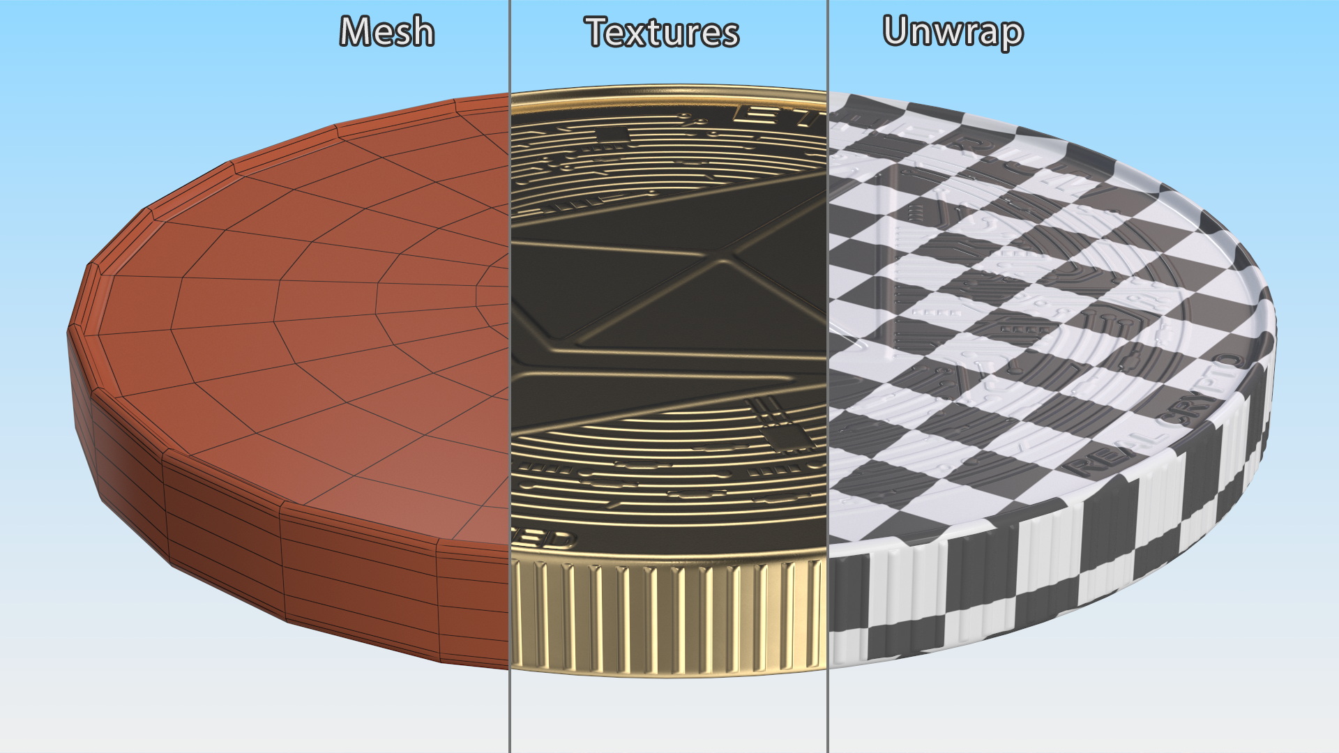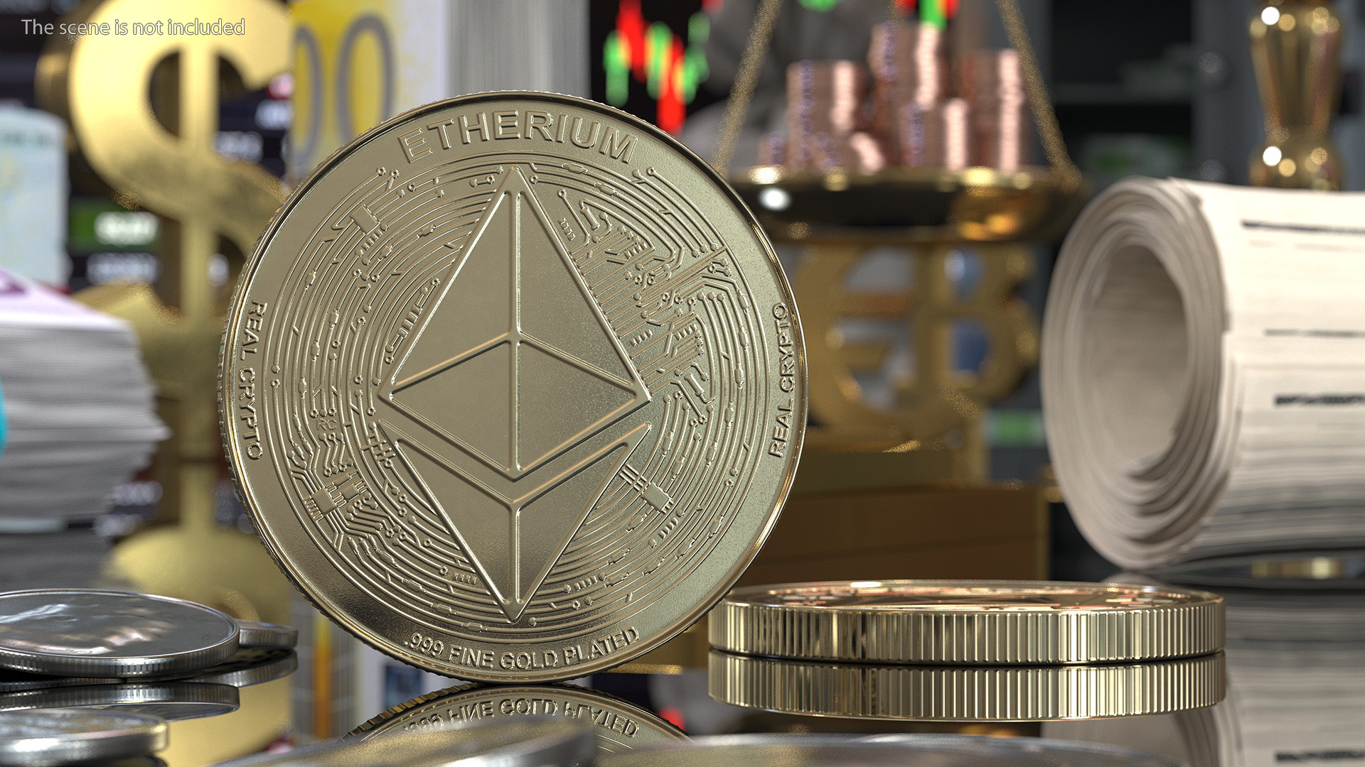 Ethereum ETH Cryptocurrency Golden Coin is a high quality, photo real 3d model that will enhance detail and realism to any of your rendering projects. The model has a fully textured, detailed design that allows for close-up renders, and was originally modeled in 3ds Max 2020 and rendered with V-Ray. Renders have no postprocessing!