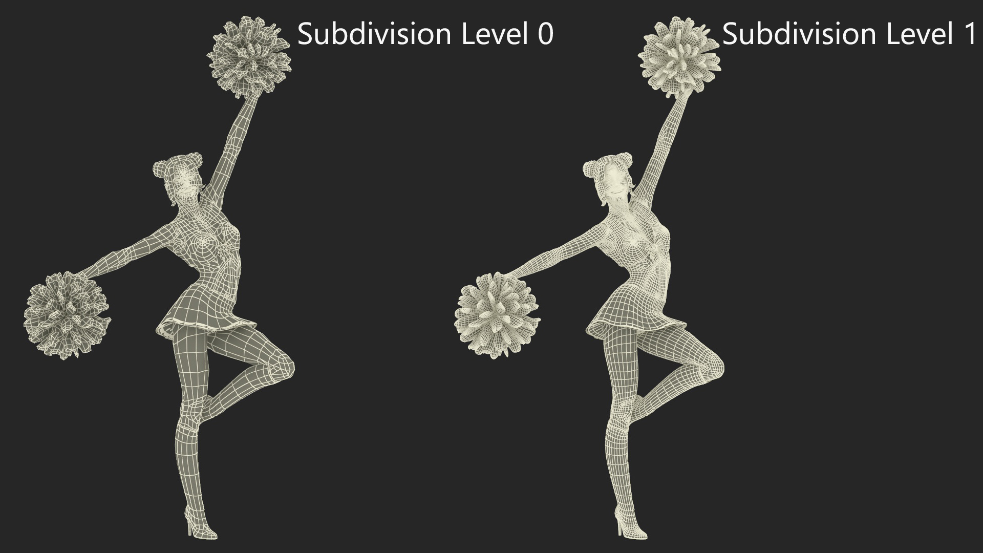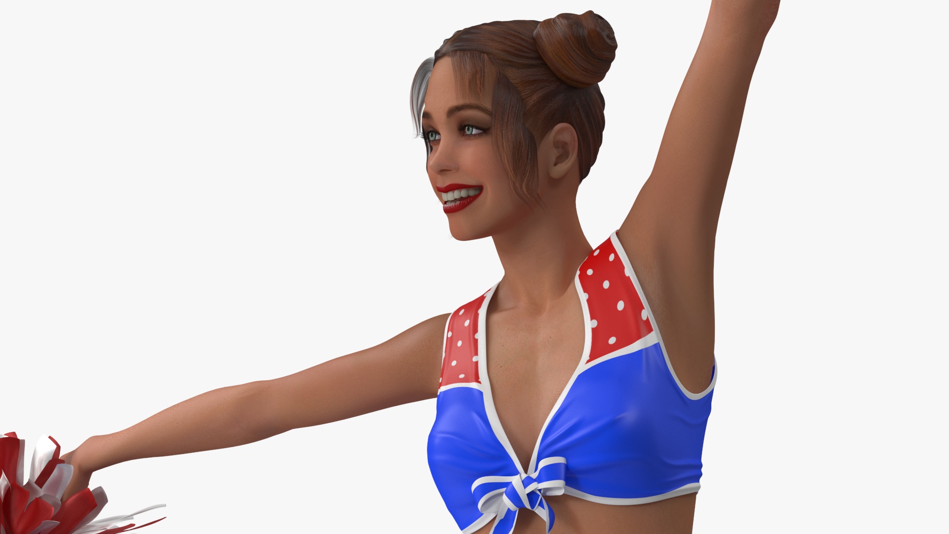 European Woman Dancing with Pompoms is a 3d model of performer or dancer who uses pompoms as props during a dance routine.