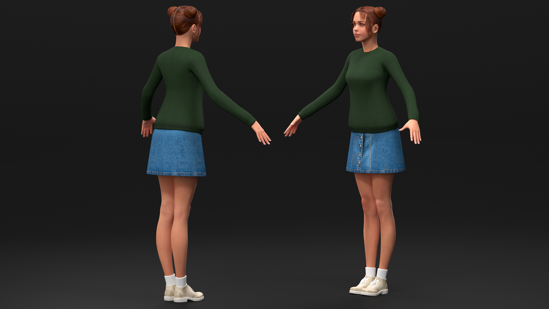 European Woman Street Style Rigged is a three-dimensional model of Caucasian female character in casual style (street style) clothes.