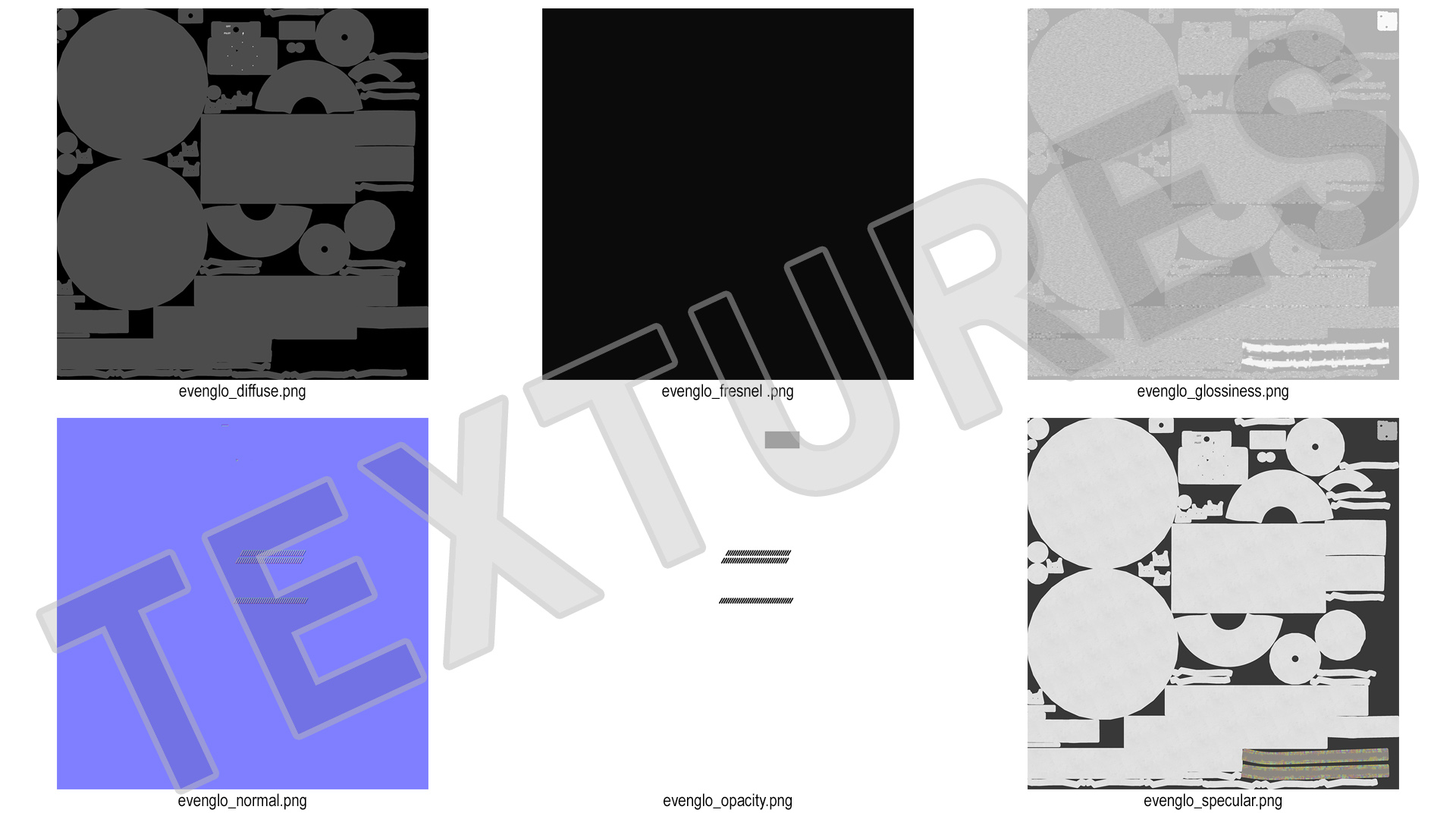 All textures and materials are included and mapped. (All colors can be easily modified.)