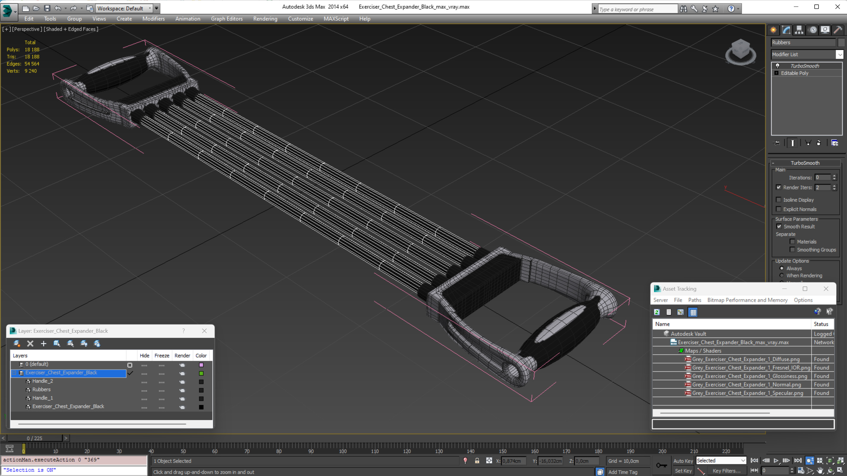 Exerciser Chest Expander Black is a high quality, photo real 3d model that will enhance detail and realism to any of your rendering projects. The model has a fully textured, detailed design that allows for close-up renders, and was originally modeled in 3ds Max 2020 and rendered with V-Ray. Renders have no postprocessing!