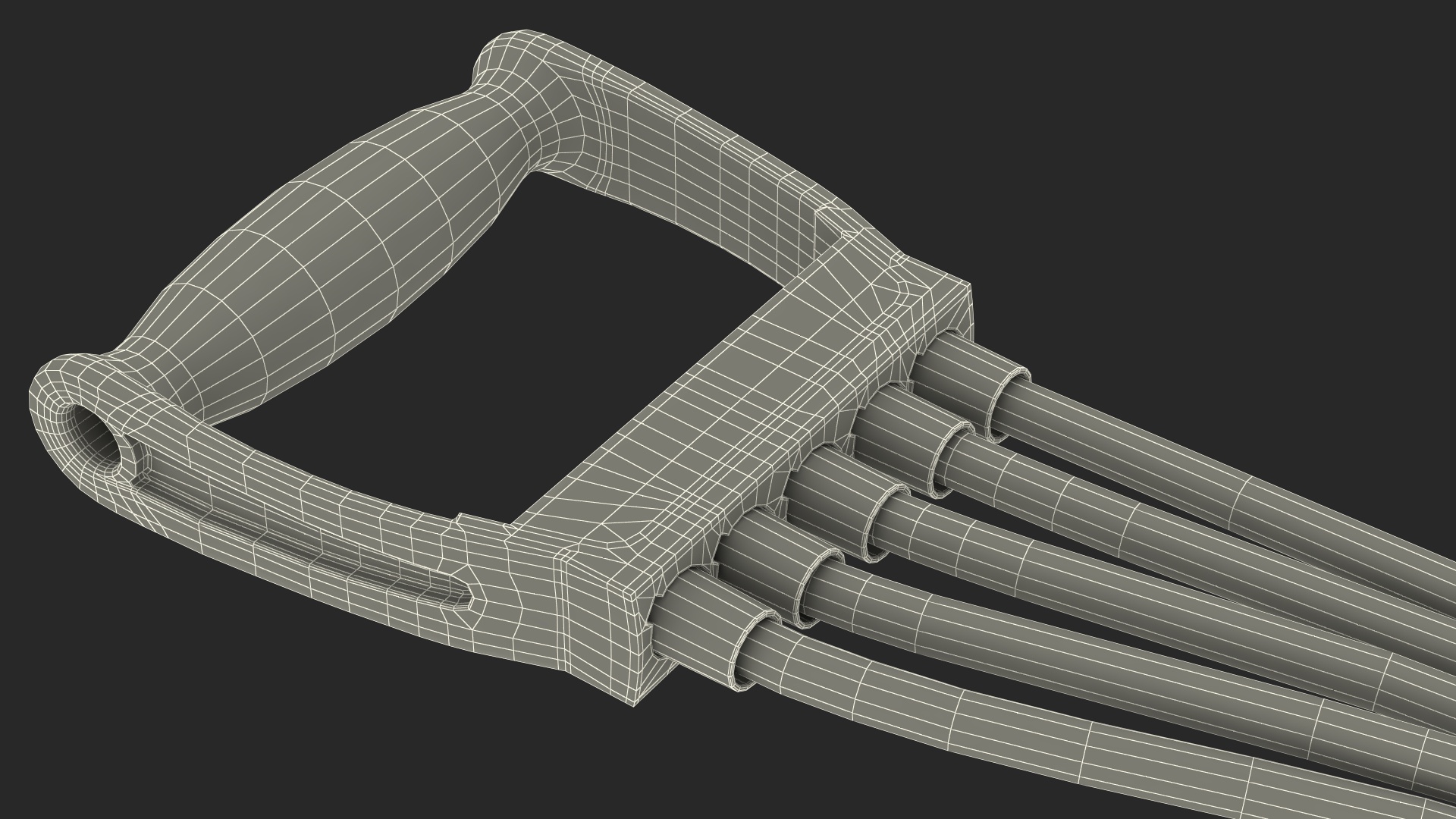 Expander Exerciser Lying Black is a three-dimensional model of exercise tool, which consist of two handles joined by natural latex tubes, and which can be used for home workouts.