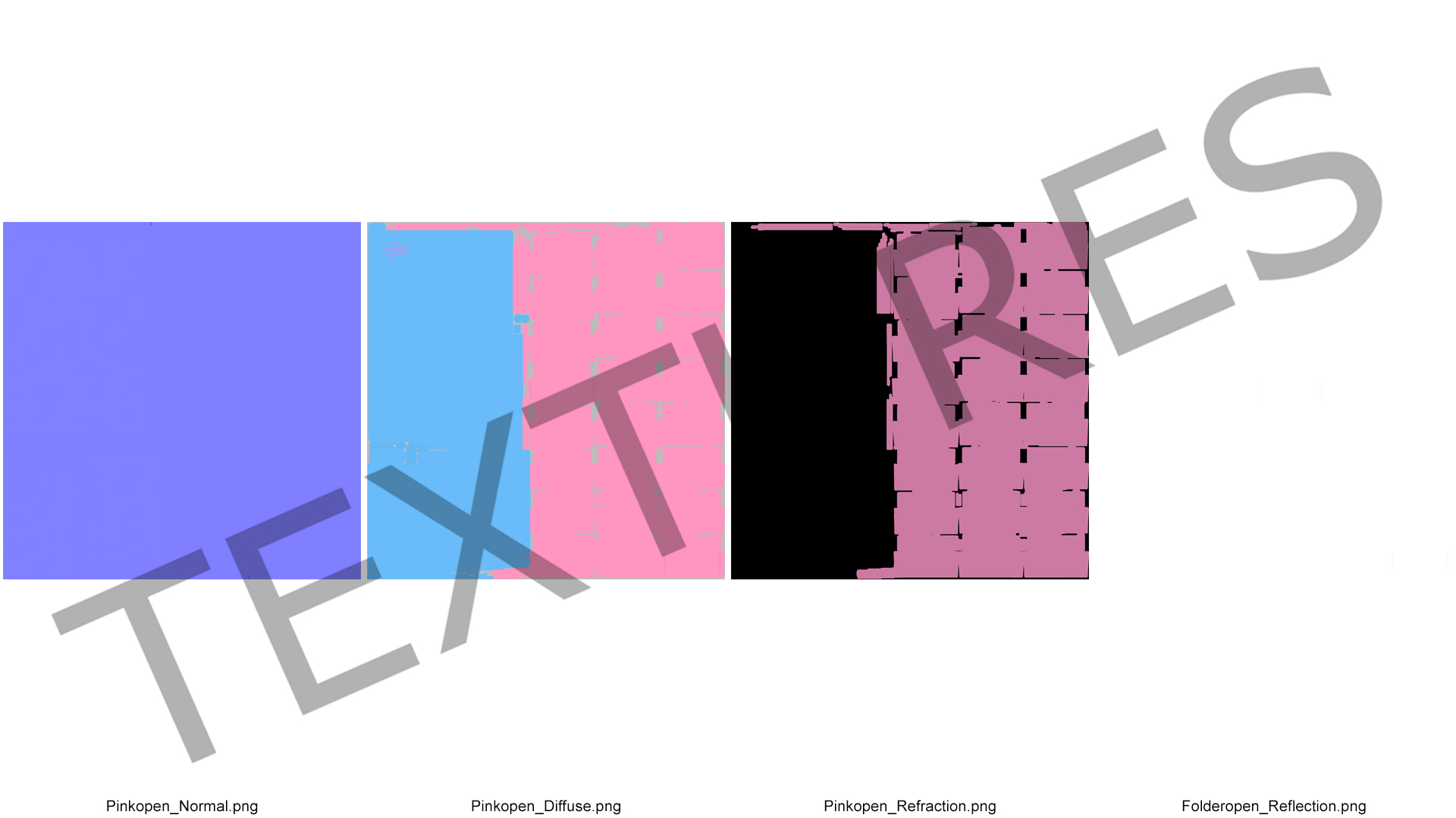 All textures and materials are included and mapped. (All colors can be easily modified.)