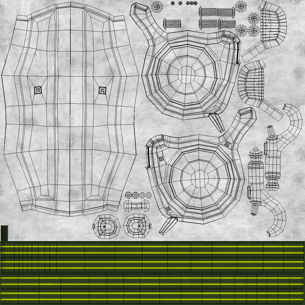 All textures and materials are included and mapped. (All colors can be easily modified.)