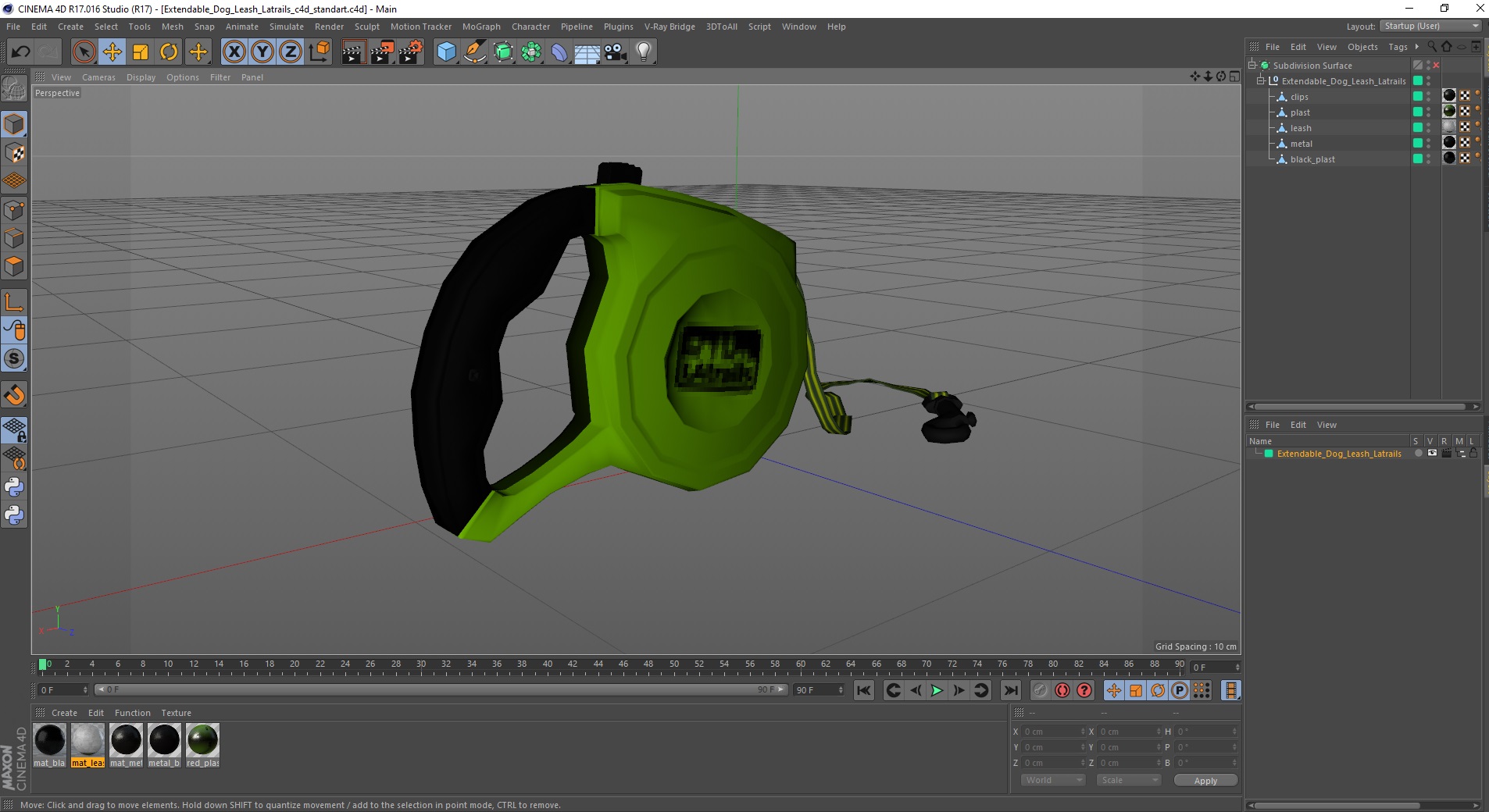 Extendable Dog Leash Latrails is a high quality, photo real 3d model that will enhance detail and realism to any of your rendering projects. The model has a fully textured, detailed design that allows for close-up renders, and was originally modeled in 3ds Max 2020 and rendered with V-Ray. Renders have no postprocessing!