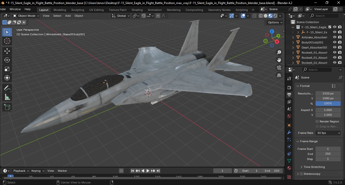 F-15 Silent Eagle in Flight Battle Position is a high quality, photo real 3d model that will enhance detail and realism to any of your rendering projects. The model has a fully textured, detailed design that allows for close-up renders, and was originally modeled in 3ds Max 2020 and rendered with V-Ray. Renders have no postprocessing!