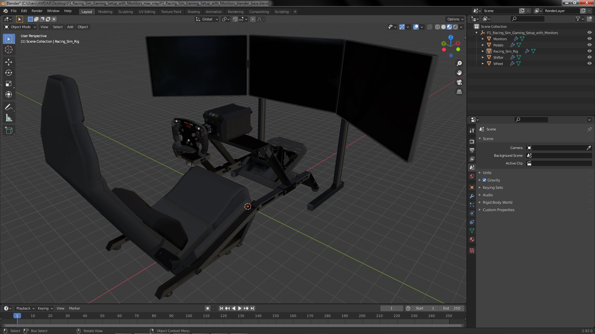 F1 Racing Sim Gaming Setup with Monitors is a 3d model of a gaming setup that is designed to simulate the experience of driving a Formula 1 (F1) race car.