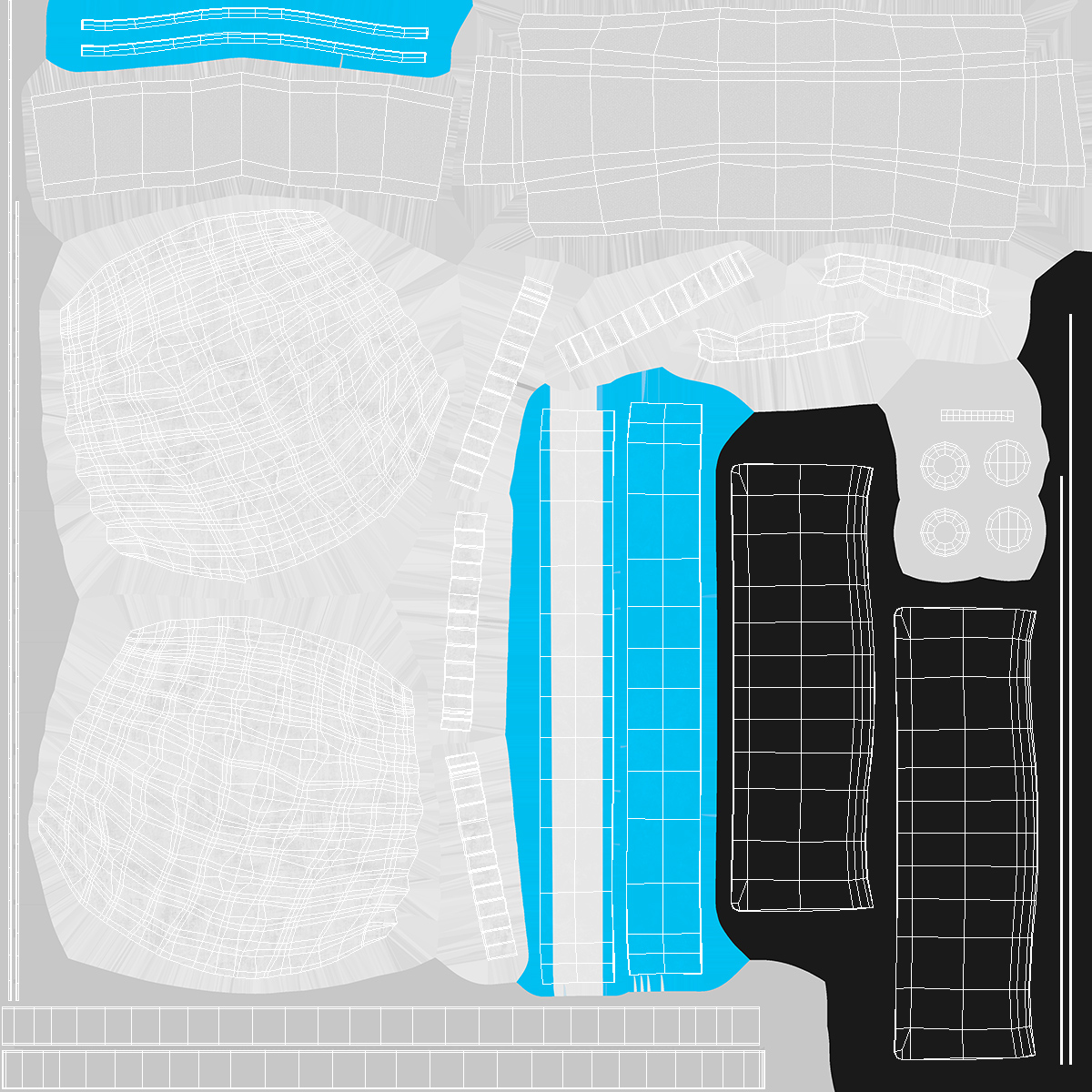 All textures and materials are included and mapped. (All colors can be easily modified.)