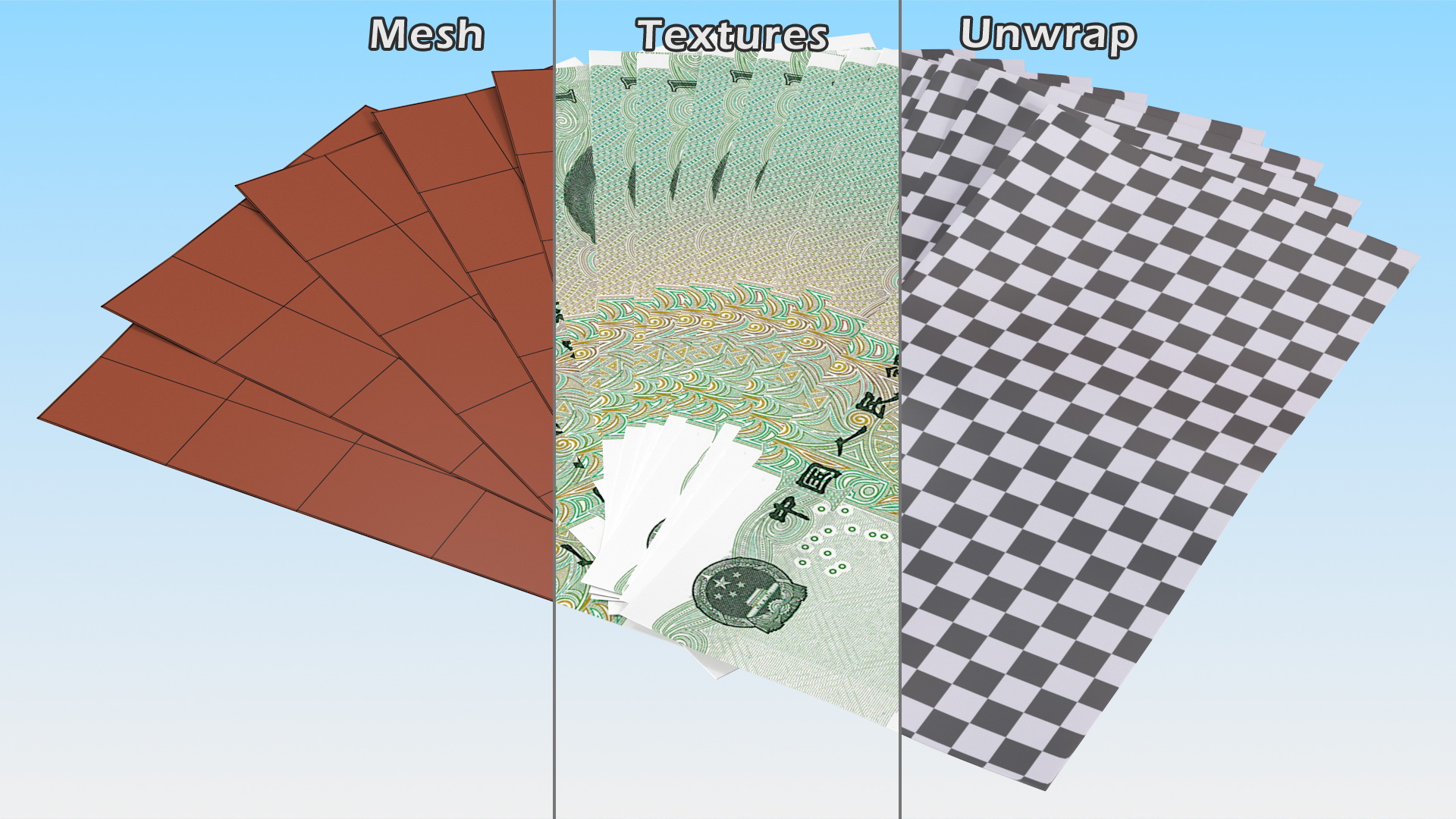Fan of Chinese 1 Yuan 2019 Banknotes is a high quality, photo real 3d model that will enhance detail and realism to any of your rendering projects. The model has a fully textured, detailed design that allows for close-up renders, and was originally modeled in 3ds Max 2020 and rendered with V-Ray. Renders have no postprocessing!