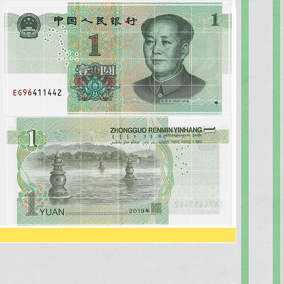 China cash currency (single paper banknote or bank-note) of the modern People's Republic of China (PRC).