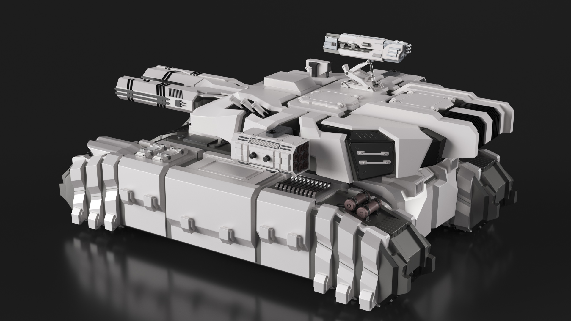 Fantastic Heavy Tank White is a 3d model of a formidable armored vehicle designed for advanced military and sci-fi applications.