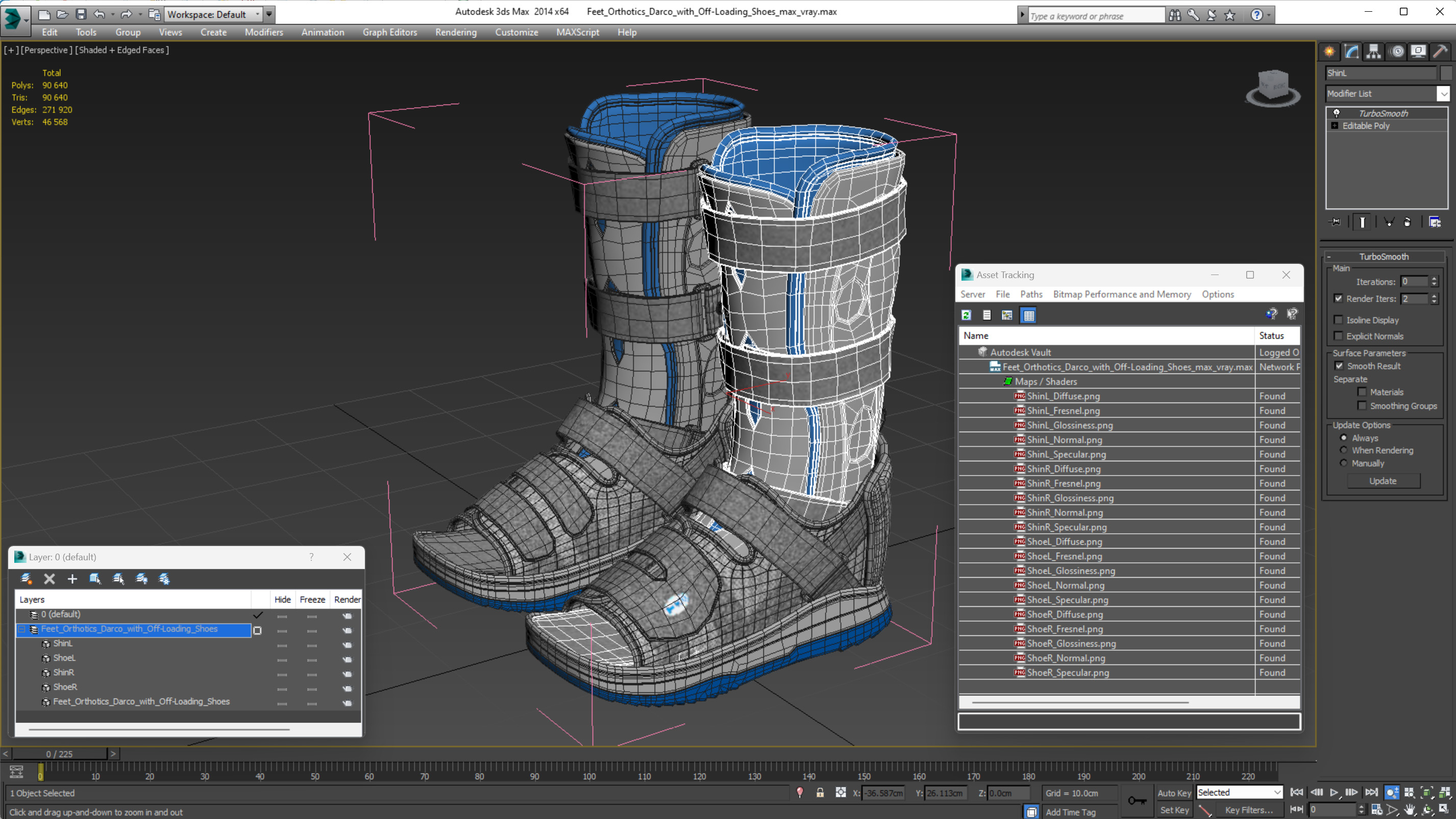 Feet Orthotics Darco with Off-Loading Shoes for 3D Print is a high-quality 3D model, ready to be used for 3D printing projects. The model's geometry is solid, allowing the forms and details to be replicated excellently in a 3D print. The product renders were created in 3Ds Max with V-Ray to demonstrate how the model may look with materials applied. The renders have no post-processing!