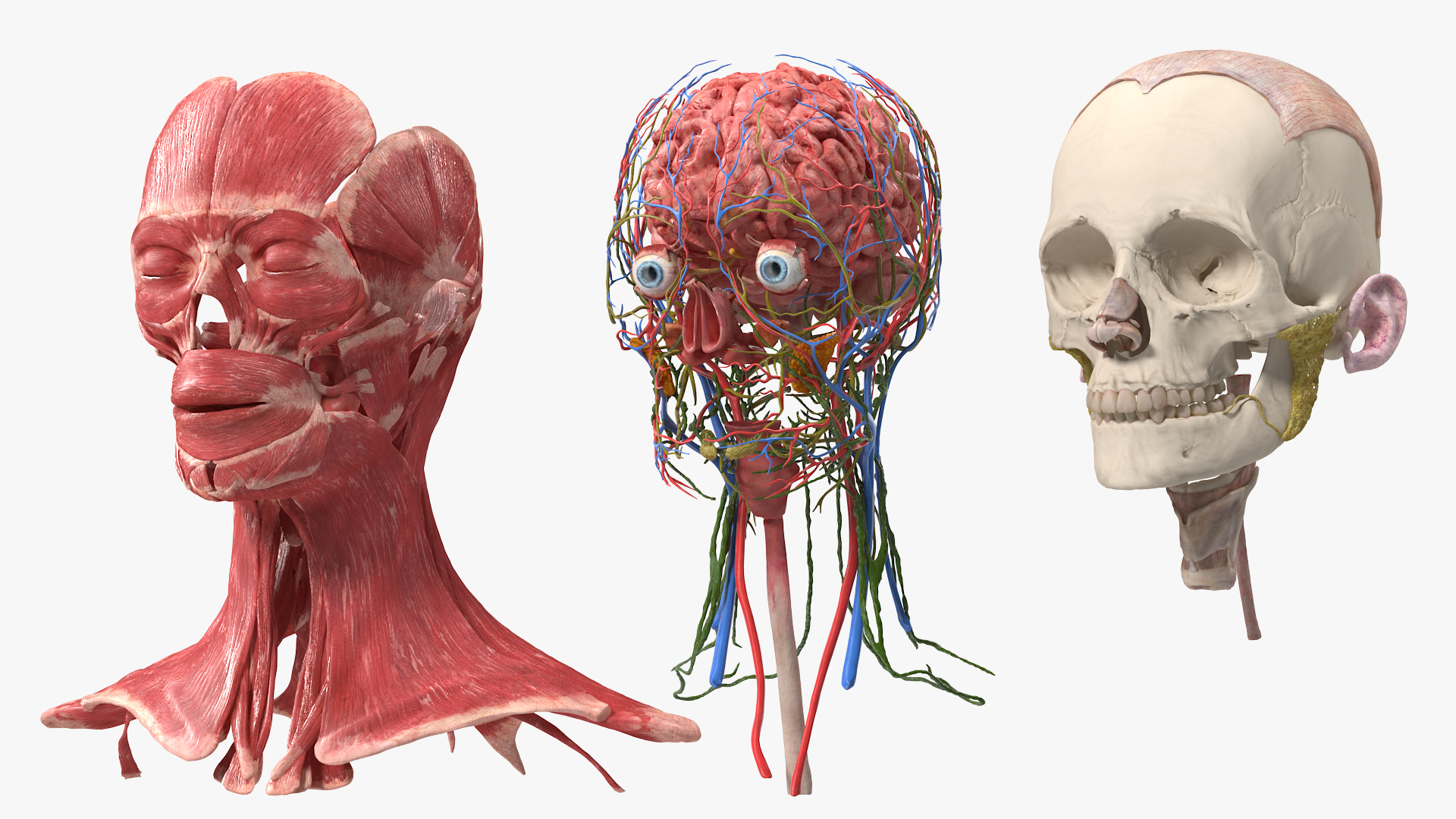 Female Anatomy Head is a three-dimensional model of a woman person head and neck skinless structures.