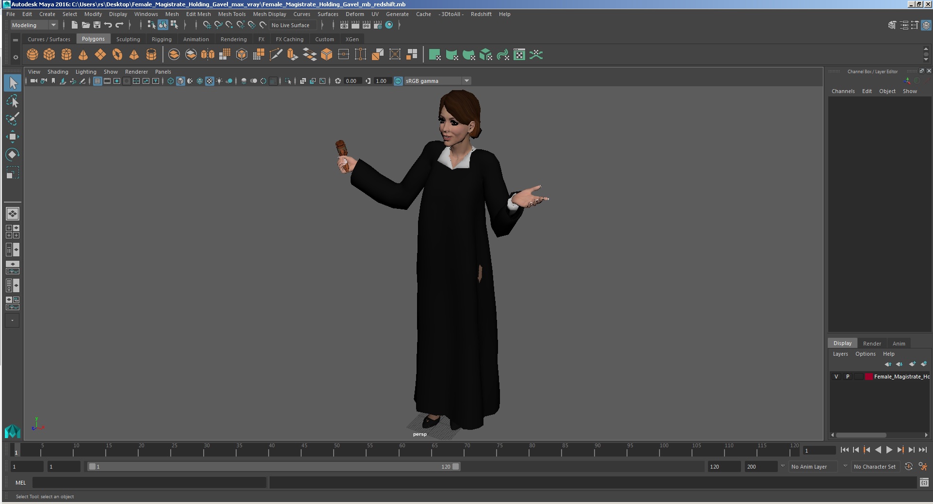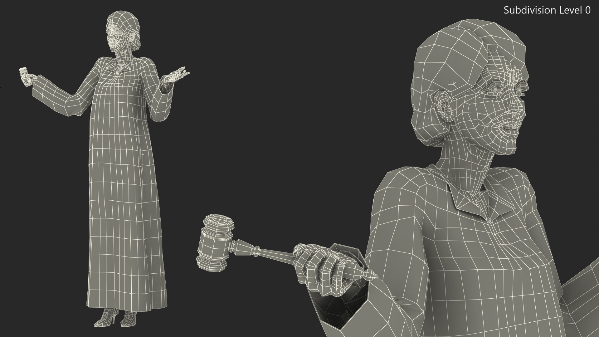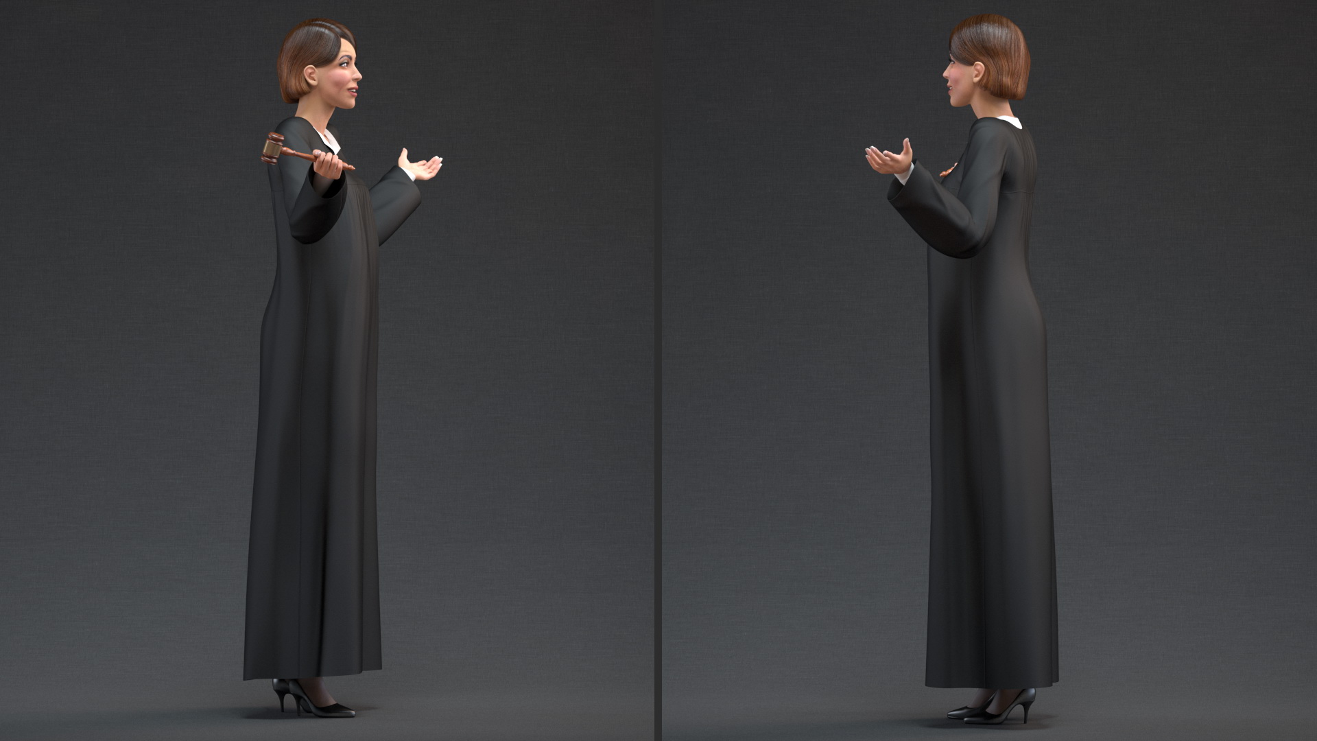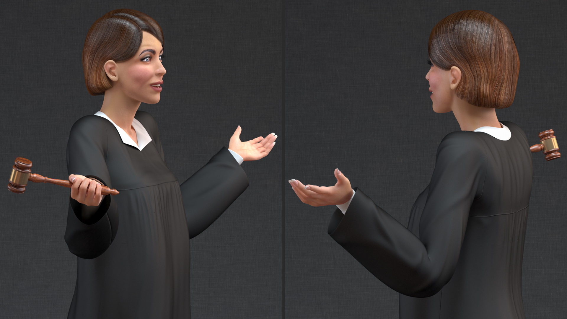 Female Magistrate Holding Gavel is a high quality, photo real 3d model that will enhance detail and realism to any of your rendering projects. The model has a fully textured, detailed design that allows for close-up renders, and was originally modeled in 3ds Max 2020 and rendered with V-Ray. Renders have no postprocessing!
