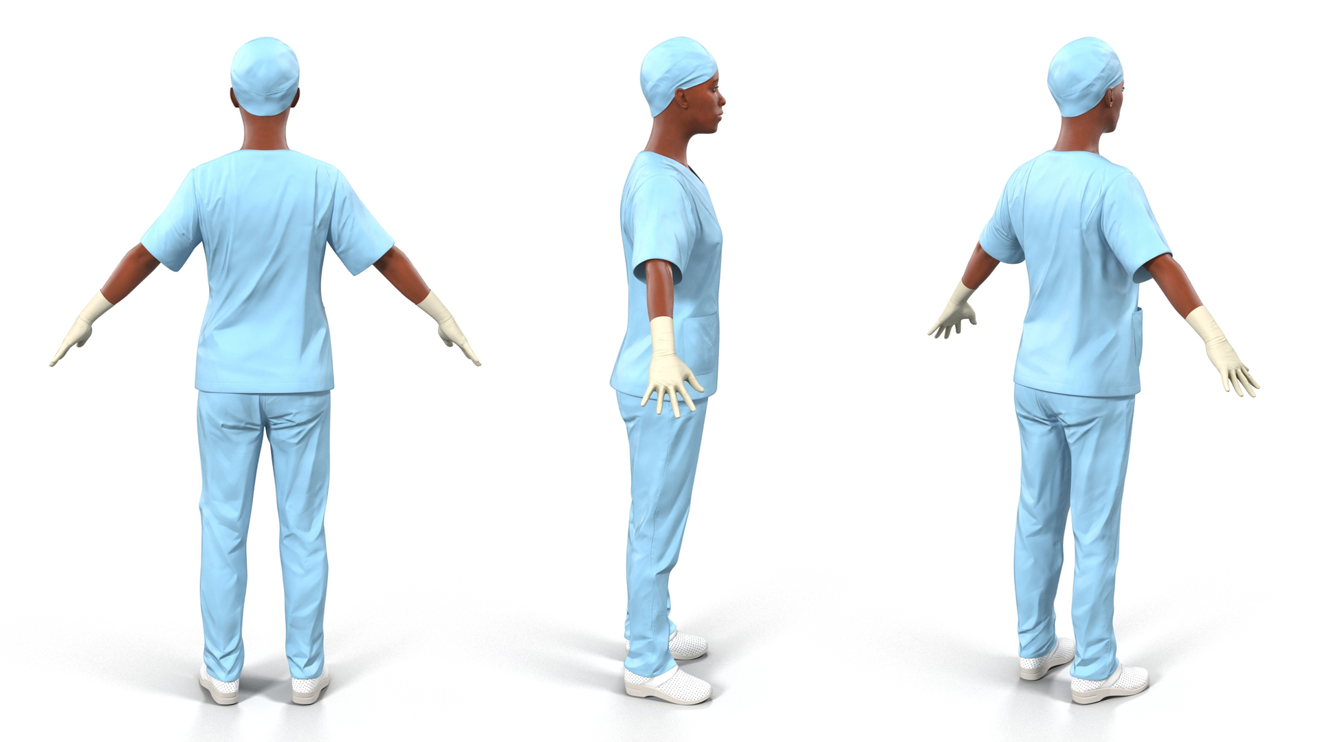 Female Nurse in Scrubs with Bloodstains Rigged Fur is a three-dimensional model of African-American female medical professional (nurse, surgeon, doctor, medical worker or hospital physician).