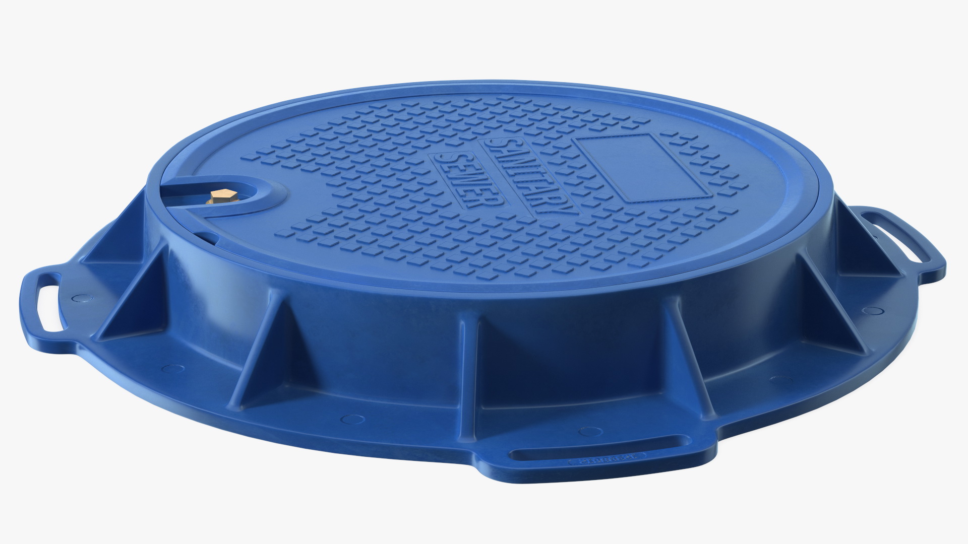 Fiberglass Manhole Blue is a three-dimensional model of a sanitary sewer device, which is manhole lockable cover with quarter turn paddle lock.
