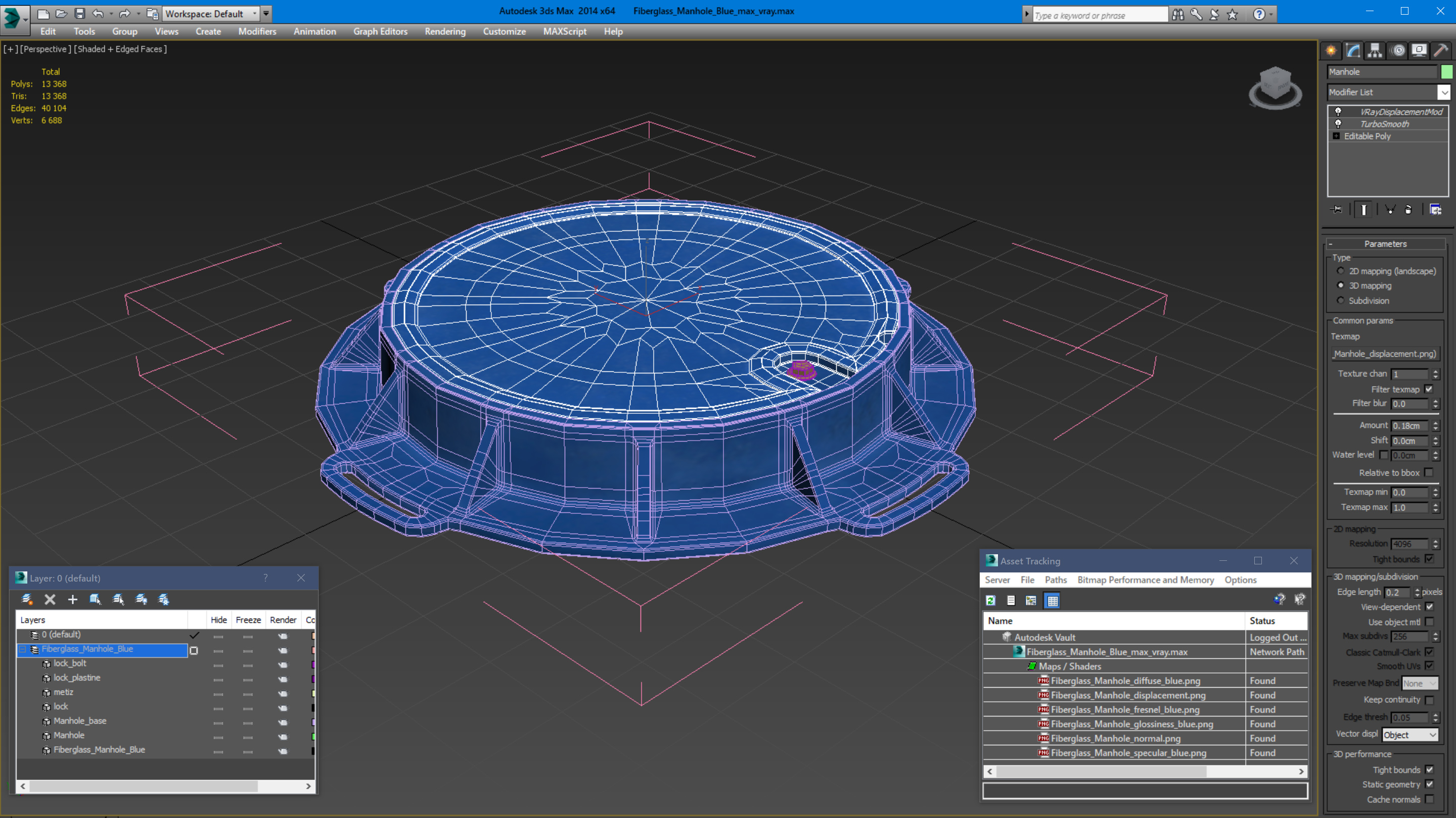 Fiberglass Manhole Blue is a high quality, photo real 3d model that will enhance detail and realism to any of your rendering projects. The model has a fully textured, detailed design that allows for close-up renders, and was originally modeled in 3ds Max 2020 and rendered with V-Ray. Renders have no postprocessing!